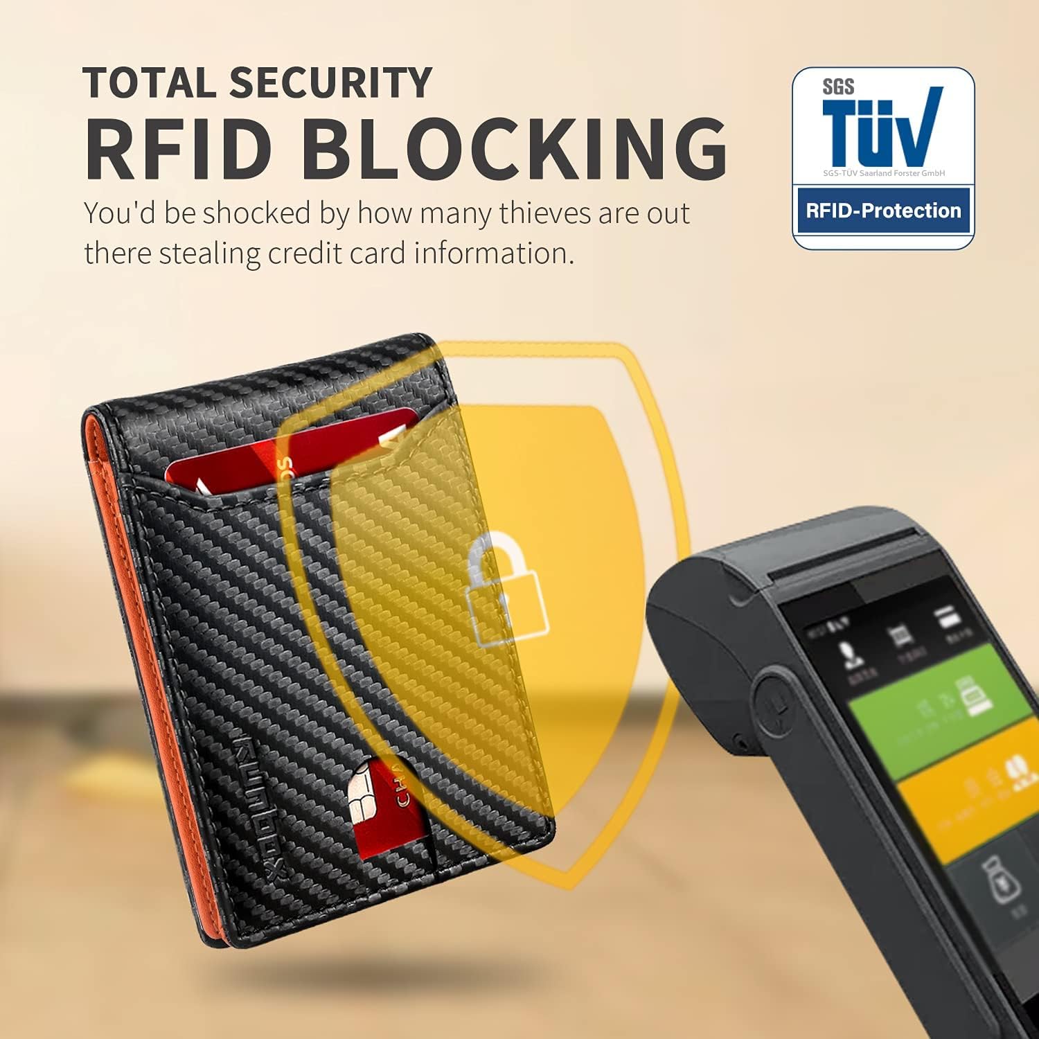 • RFID Blocking - This wallet for men are designed by German designer, made of genuine leather material, durable, wear- resistant and scratch-resistant. Our wallets block the 13.56 MHz band and protect against data theft by RFID scanners