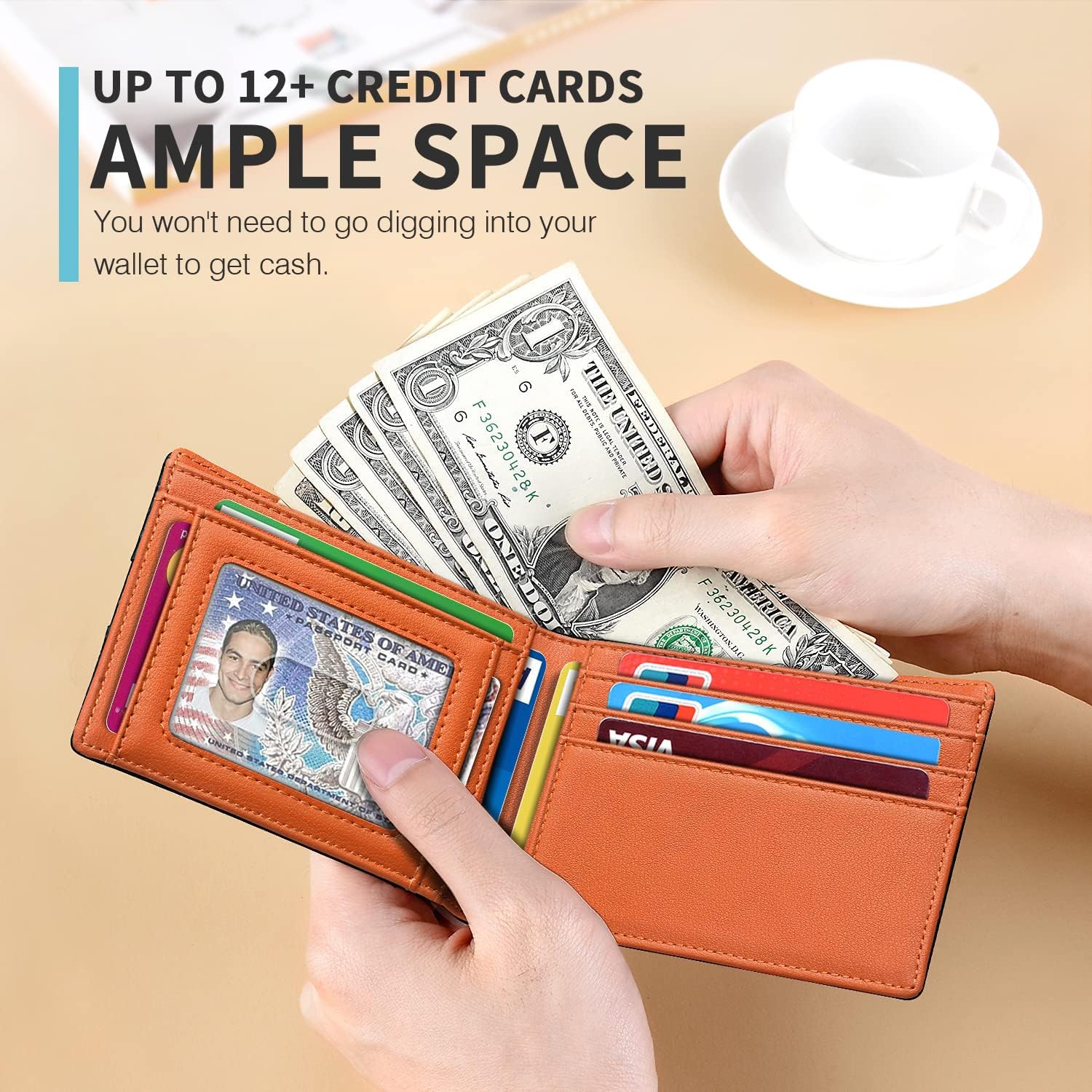 RUNBOX Novelty Wallet for Men Slim 11 Credit Card Holder Slots Leather RFID Blocking Small Thin Men's Wallet Bifold Minimalist Front Pocket Large Capacity Gift Box