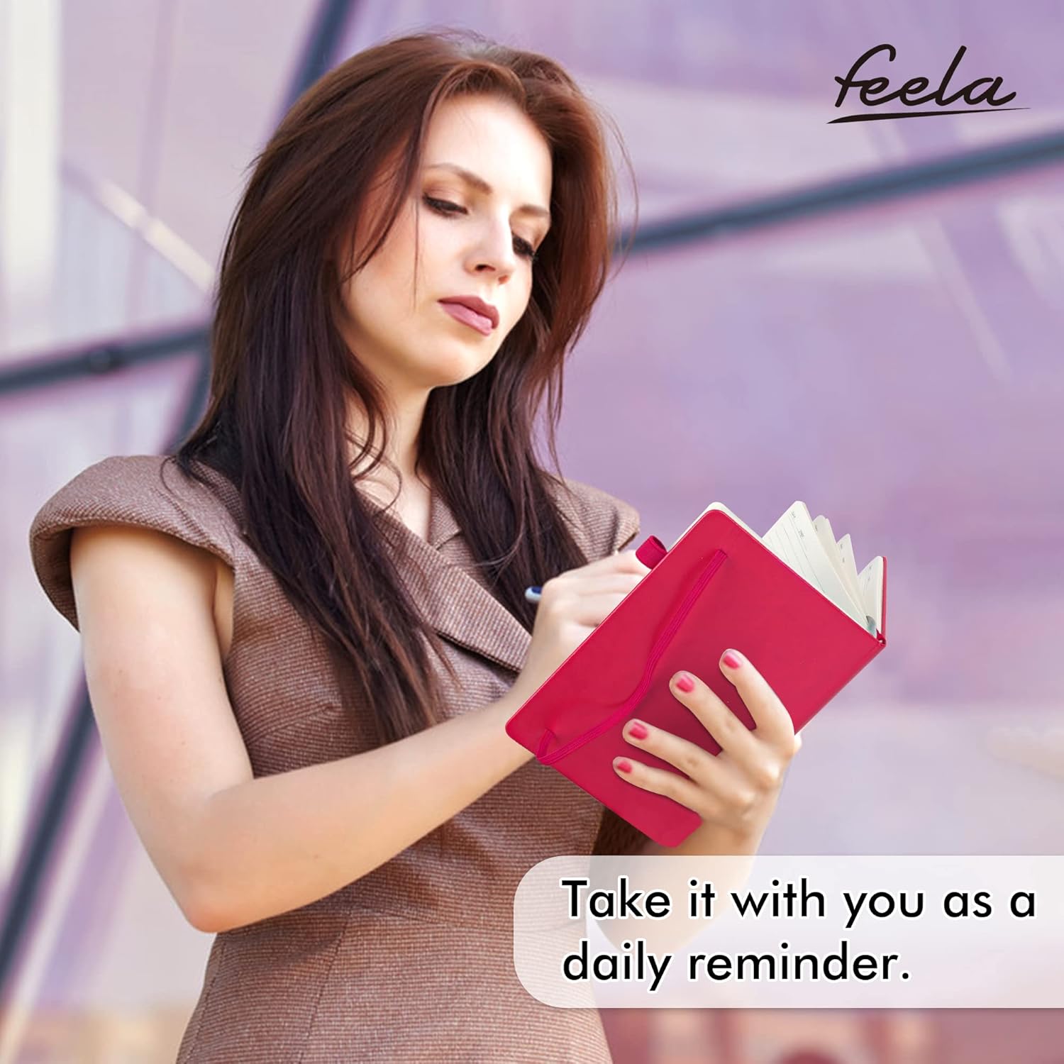 feela 24 Pack Journal Notebook for Work, Business Notebook Bulk Hardcover Lined Writing Journal with Pen Holder for Men Women Note Taking, with 24 Black Pens, 120 GSM, 5.1”x8.3”, A5, Berry