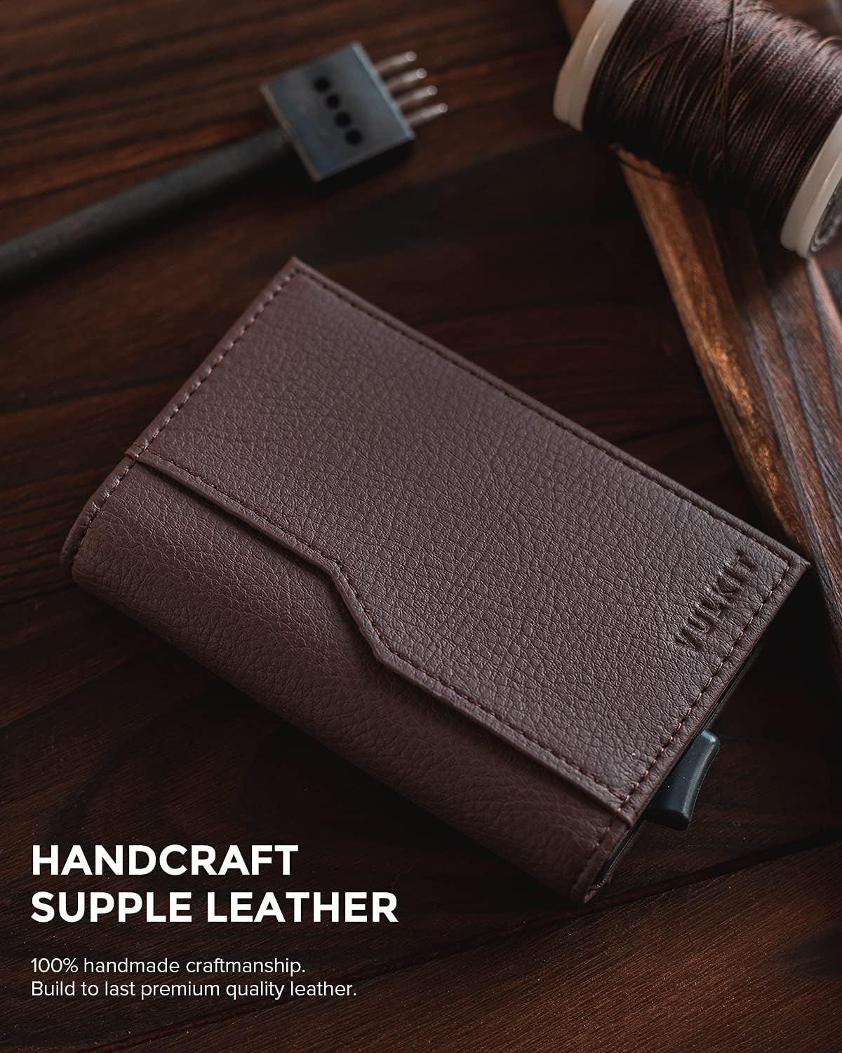 - SLIM DESIGN & GREAT FUNCTION: Designed for portable daily use. Made of durable and soft grain leather, great fitted your license, shopping cards and credit cards.
