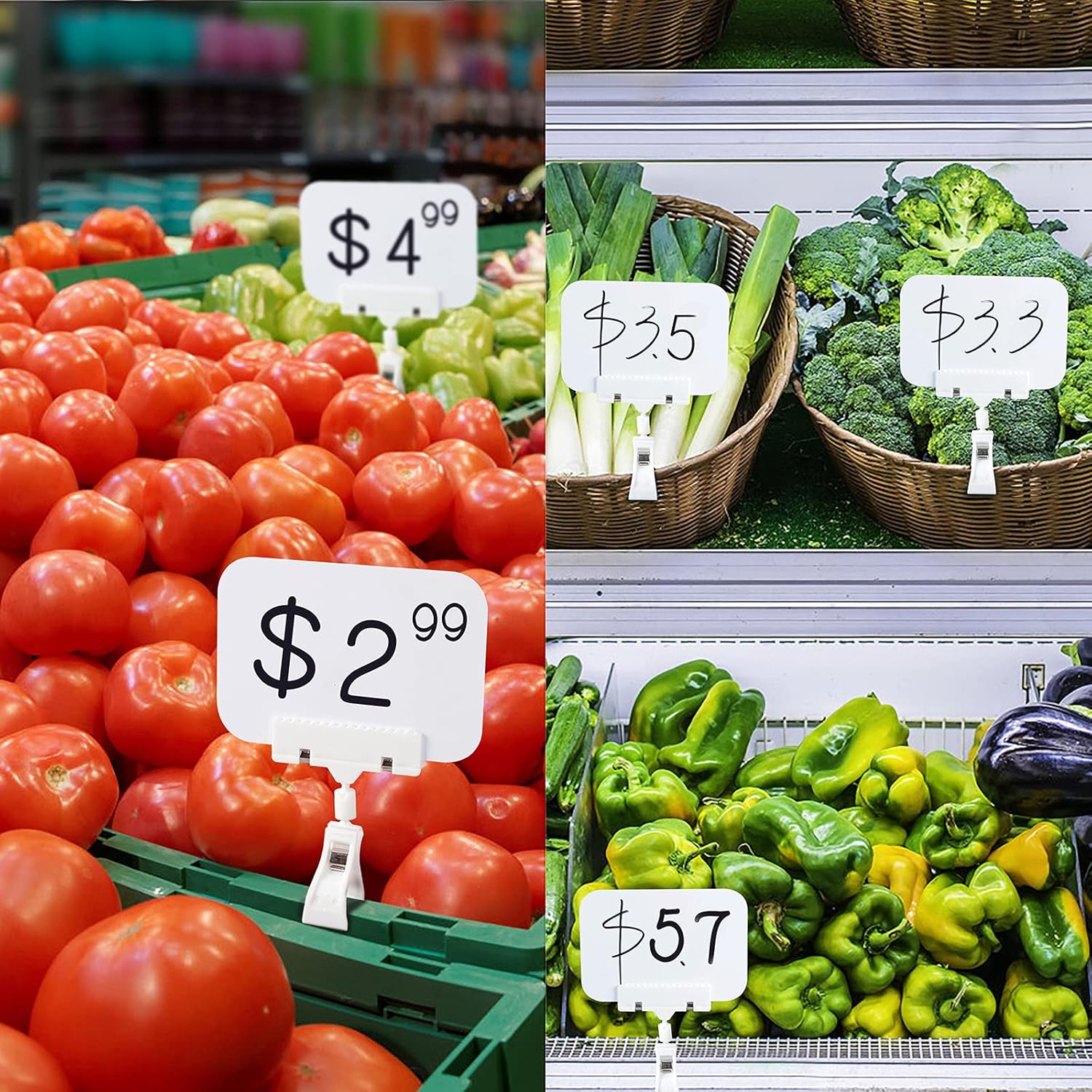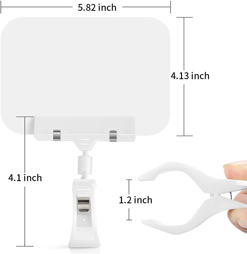 - Erasable Price Tags: Easy to write with any kind of liquid chalk markers and easy to wipe away with sponge (can't write in chalk). Base clip for holder, transverse clip with tag for sign. With the pop-up open, insert the rod through the nearest hole in the clevis, which was joined by a ball knuckle, and then write down what you want on the other side of the chalkboard. What's more, you can erase rewritable sign board for reuse