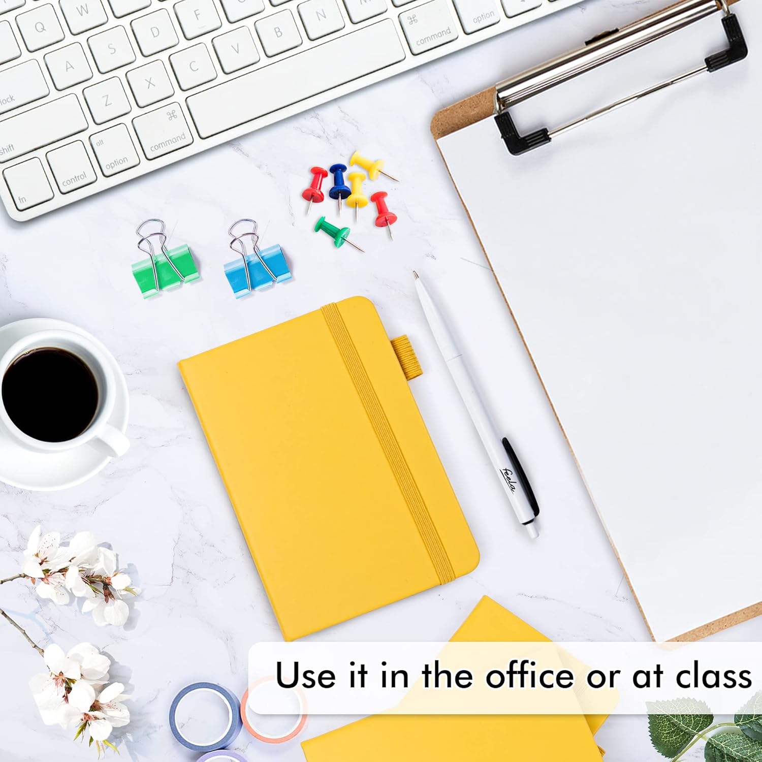 feela 3 Pack Pocket Notebook Journals with 3 Black Pens, A6 Mini Cute Small Journal Notebook Bulk Hardcover College Ruled Notepad with Pen Holder for Office School Supplies, 3.5”x 5.5”, Yellow