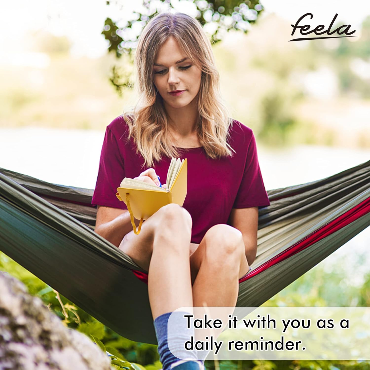 - Feela 3 Pack College Ruled Yellow Notebooks contains 3 college ruled sturdy cover notebooks and 3 Black Retractable Pens. Each of the notebooks measures 3.5” x 5.5”, which is perfect to carry and easily held by young girls and boys. These black cute pens are customized to be placed in the pen holder, which is pretty convenient.