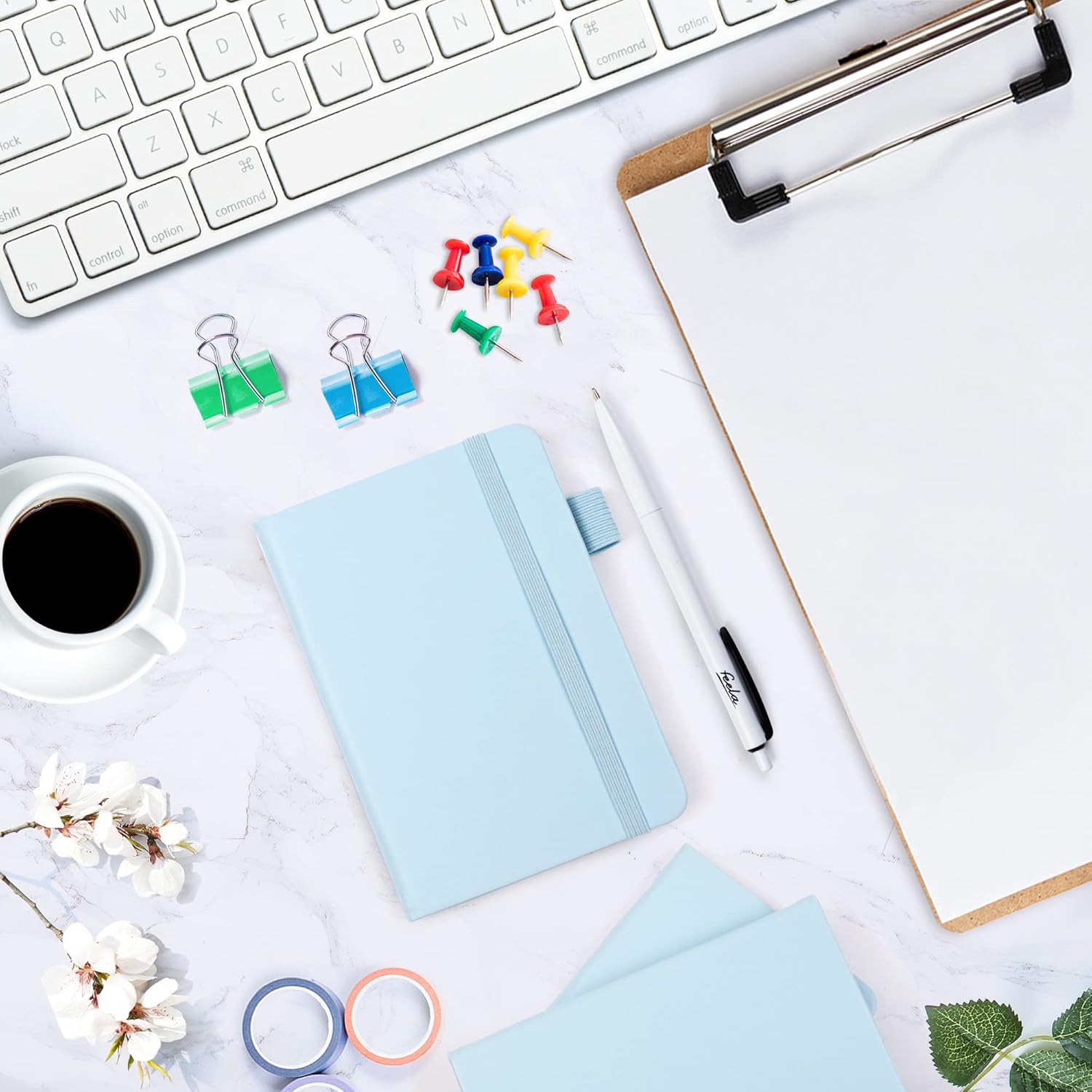 - Feela 3 Pack College Ruled Light Blue Notebooks contains 3 college ruled sturdy cover notebooks and 3 Black Retractable Pens. Each of the notebooks measures 3.5” x 5.5”, which is perfect to carry and easily held by young girls and boys. These black cute pens are customized to be placed in the pen holder, which is pretty convenient.