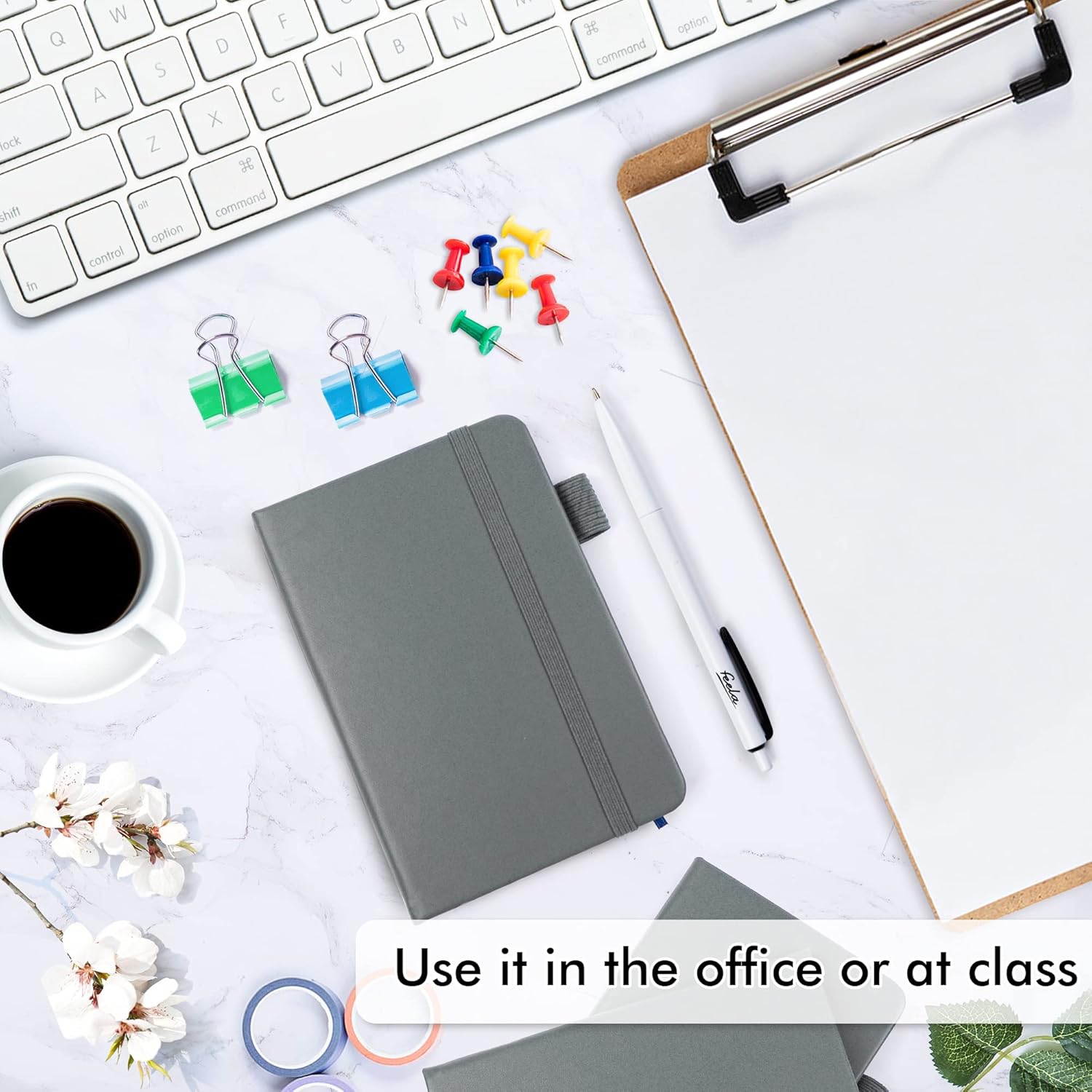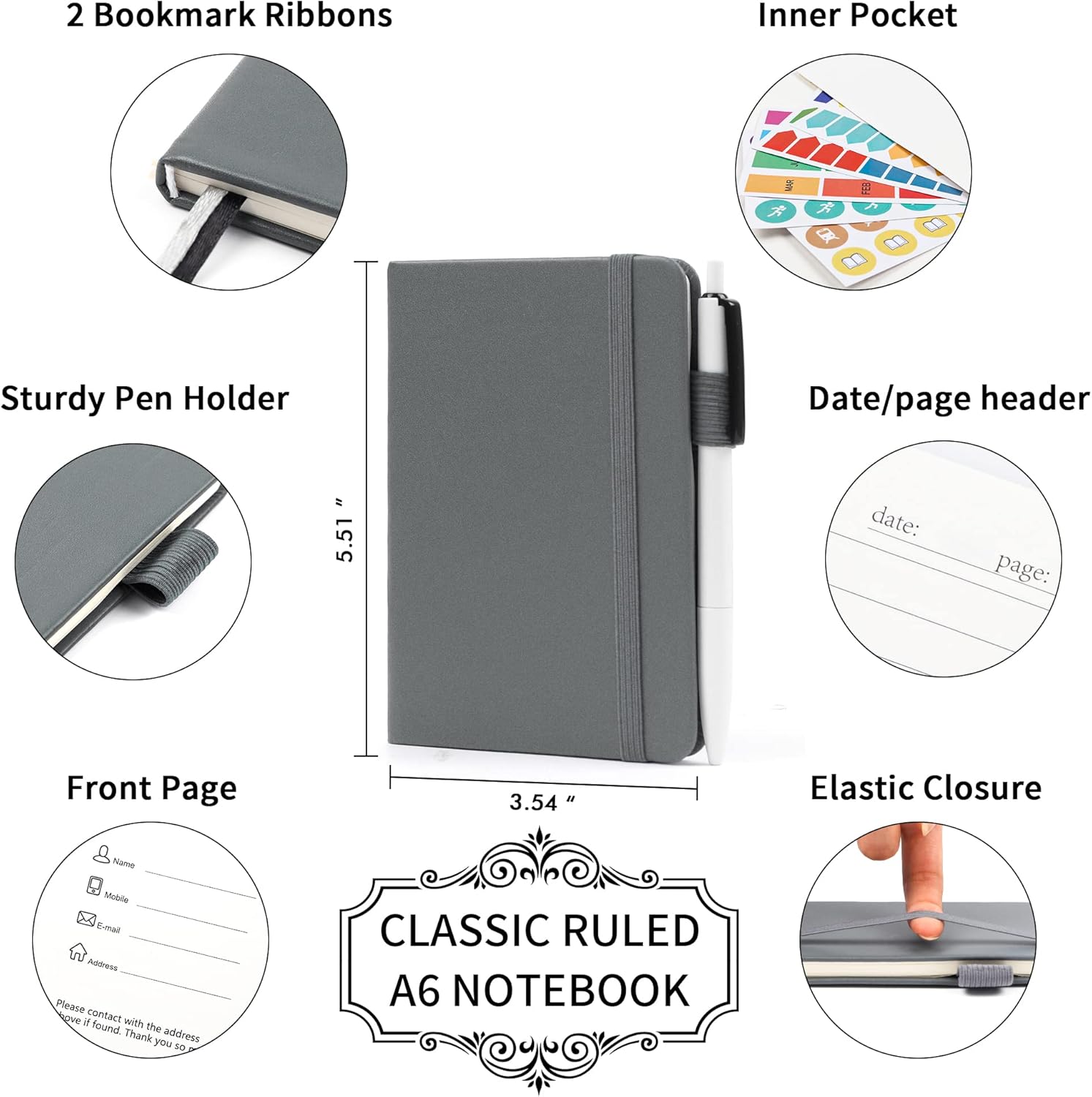 feela 3 Pack Pocket Notebook Journals with 3 Black Pens, A6 Mini Cute Small Journal Notebook Bulk Hardcover College Ruled Notepad with Pen Holder for Office School Supplies, 3.5”x 5.5”, Gray