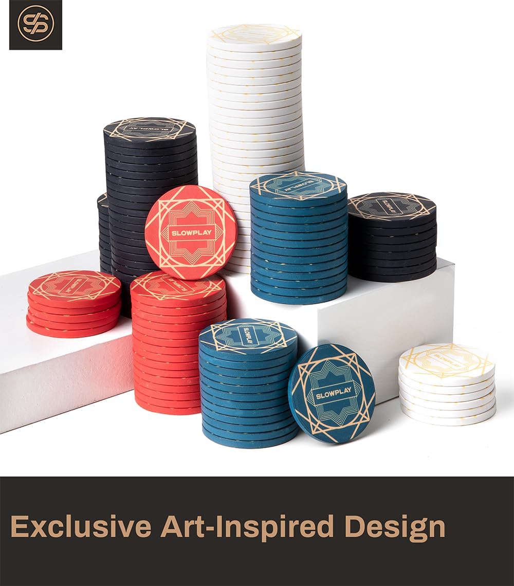 - Exquisite craftsmanship: These 39mm diameter chips are 10 grams in weight. Each is made with innovative ceramic composite material, making it more durable and allowing you to enjoy the free play. Slightly matte finish allows the ceramic chips to keep the smooth and gentle touch but also be able to stack and shuffle well. Not easy to slip even when you slide the stack across the table.
