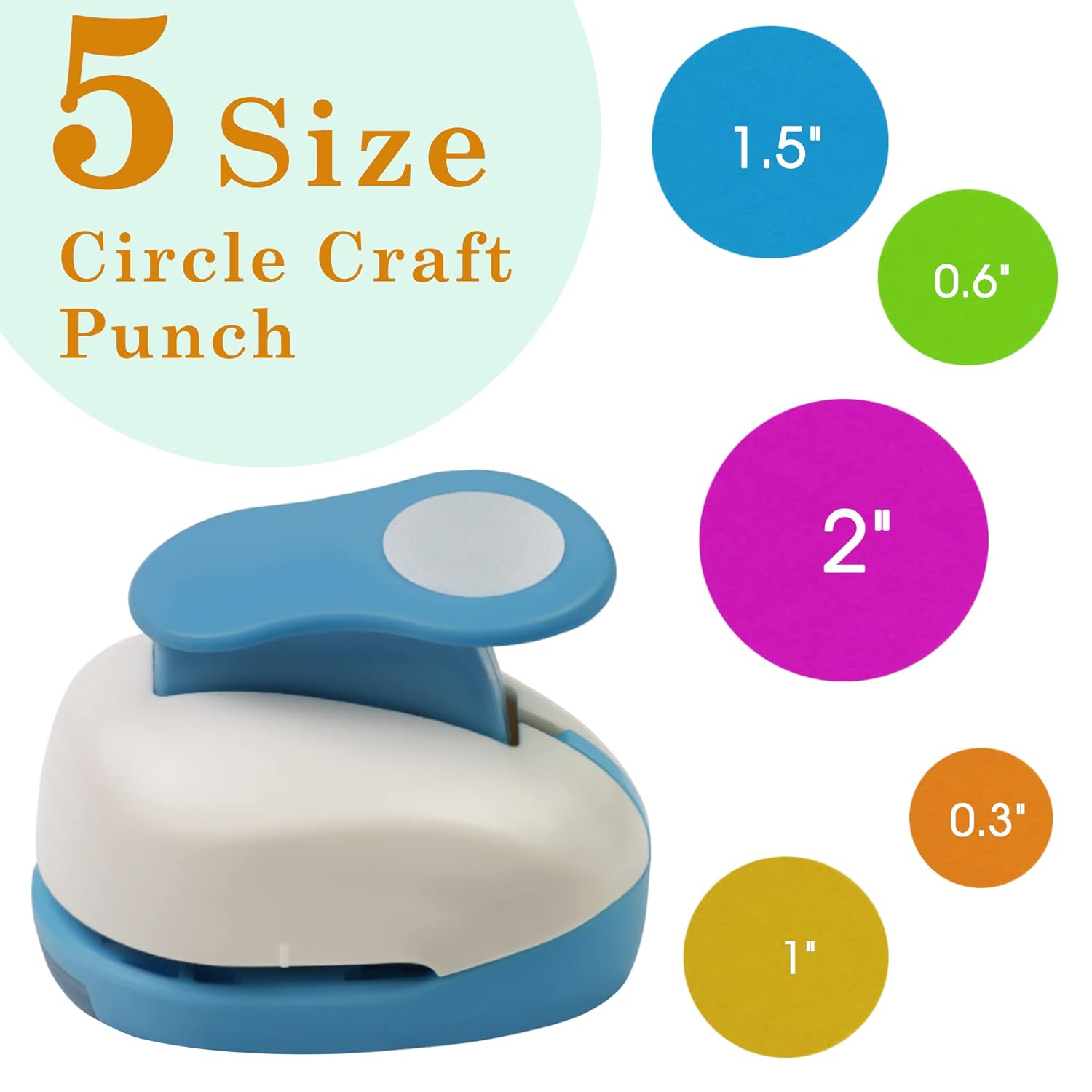 Set 5 Circle Paper Punch 0.3'' / 0.6'' / 1'' / 1.5'' / 2'', Scrapbooking Hole Punches Crafting, Design for Office Supplies, Card Making, DIY Photo Album.