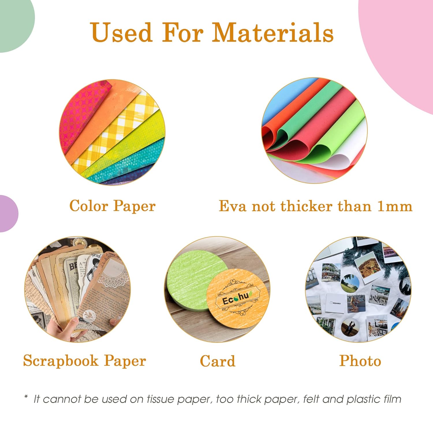 - ✿ SUITABLE MATERIAL: For best results use 70g-220g craft paper, with thick cardboard it is necessary to apply some force, don’t put too many papers in or it will get stuck (do not use the sticky paper, tissue paper, too thick paper, felt to avoid make the punch get stuck). If your paper is too thin, please use 2-3 layers.