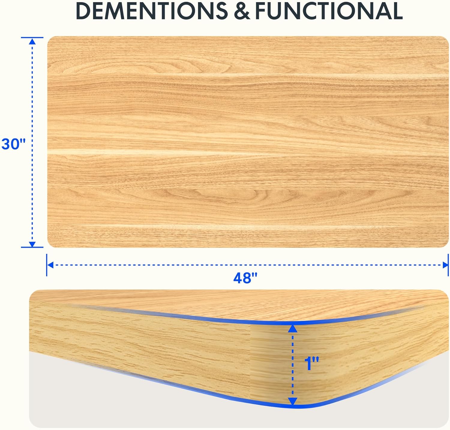 - AMPLE WHOLE-PIECE DESKTOP: With its whole-piece 1” eco-friendly desktop, this standing desk provides plenty of room for your computer setup, documents, and accessories, creating a well-organized and productive work environment. Due to hand measurements, desktop dimensions may vary slightly by 0 to 1”.