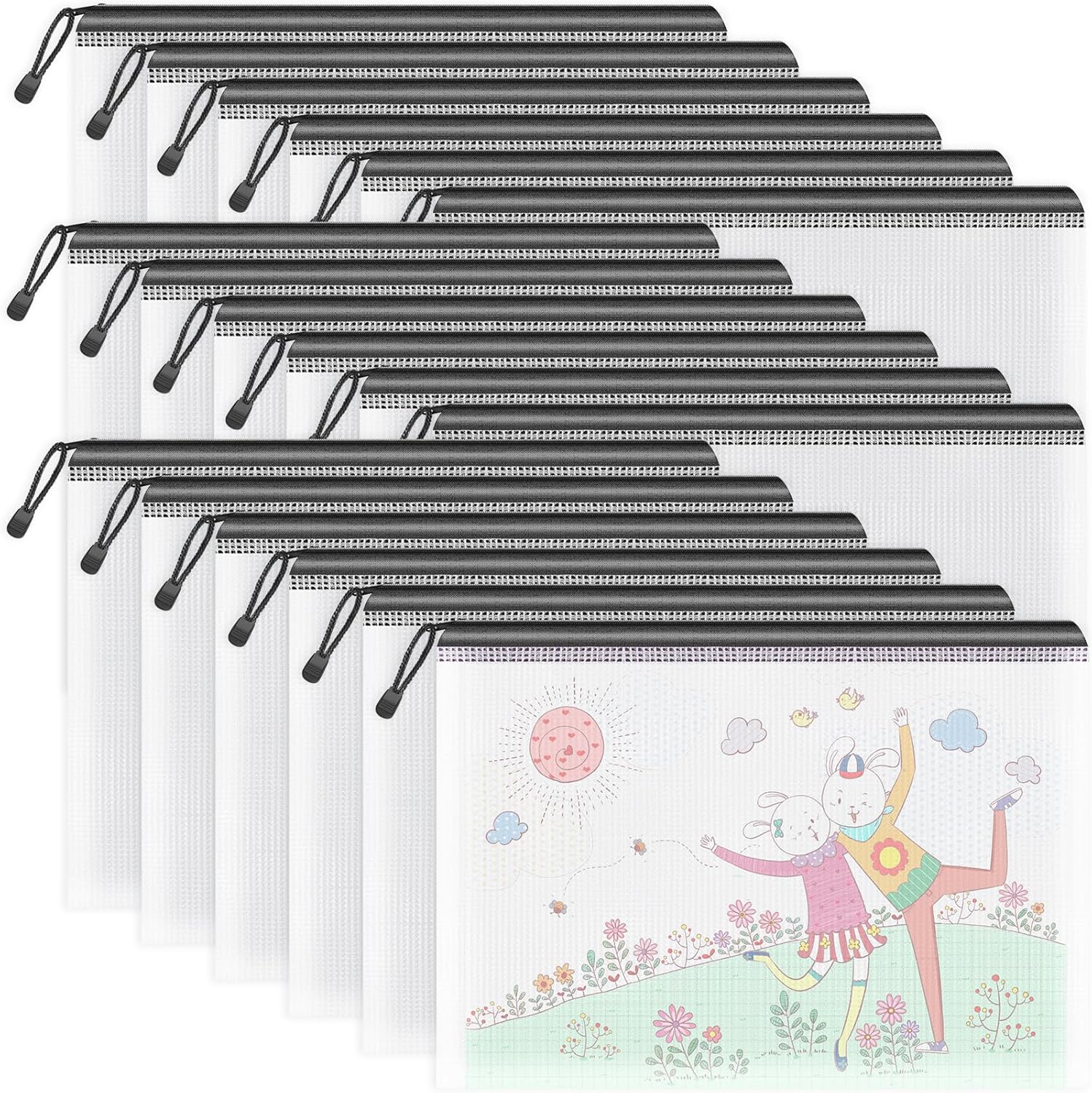 Umriox Zipper Mesh Document Pouch, 13.0 x 9.0 in (Black, 18 Packs), Clear Zipper Pouches, Waterproof Zipper Pouches for Office Supplies Cosmetics Travel Storage