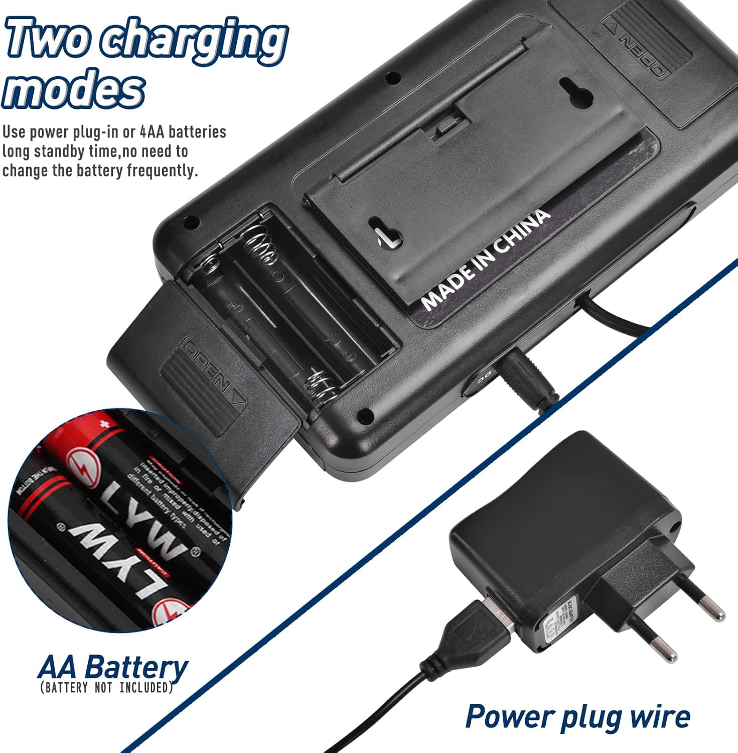 - What You Get: 1 * Stainless steel digital postal scale, 1 * DC adapter. The packaging scale can be powered both by the DC adapter or 4 pieces of batteries(Batteries NOT INCLUDED), which is convenient for you to use outdoors or indoors.