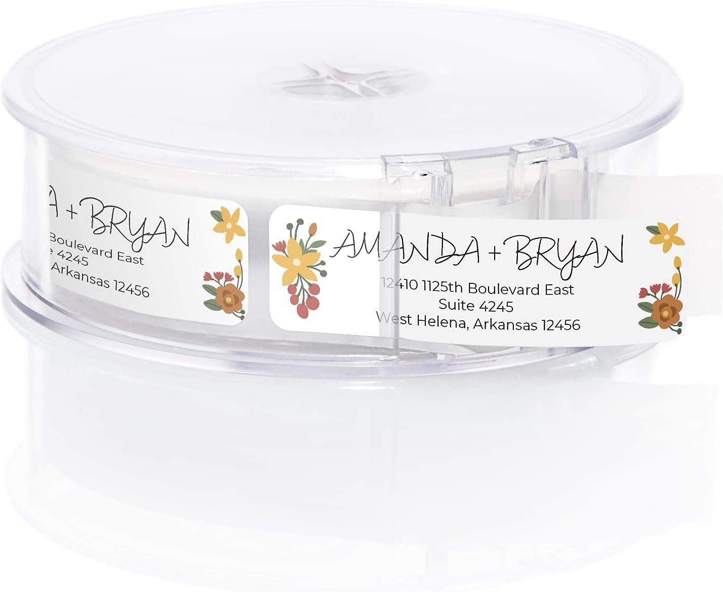 Retro Floral Rolled Address Labels/Roll of 250 Personalized Return Address Labels/Designer Return Address Stickers in Elegant Plastic Dispenser