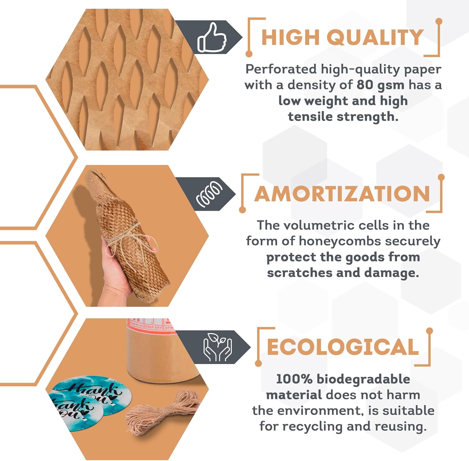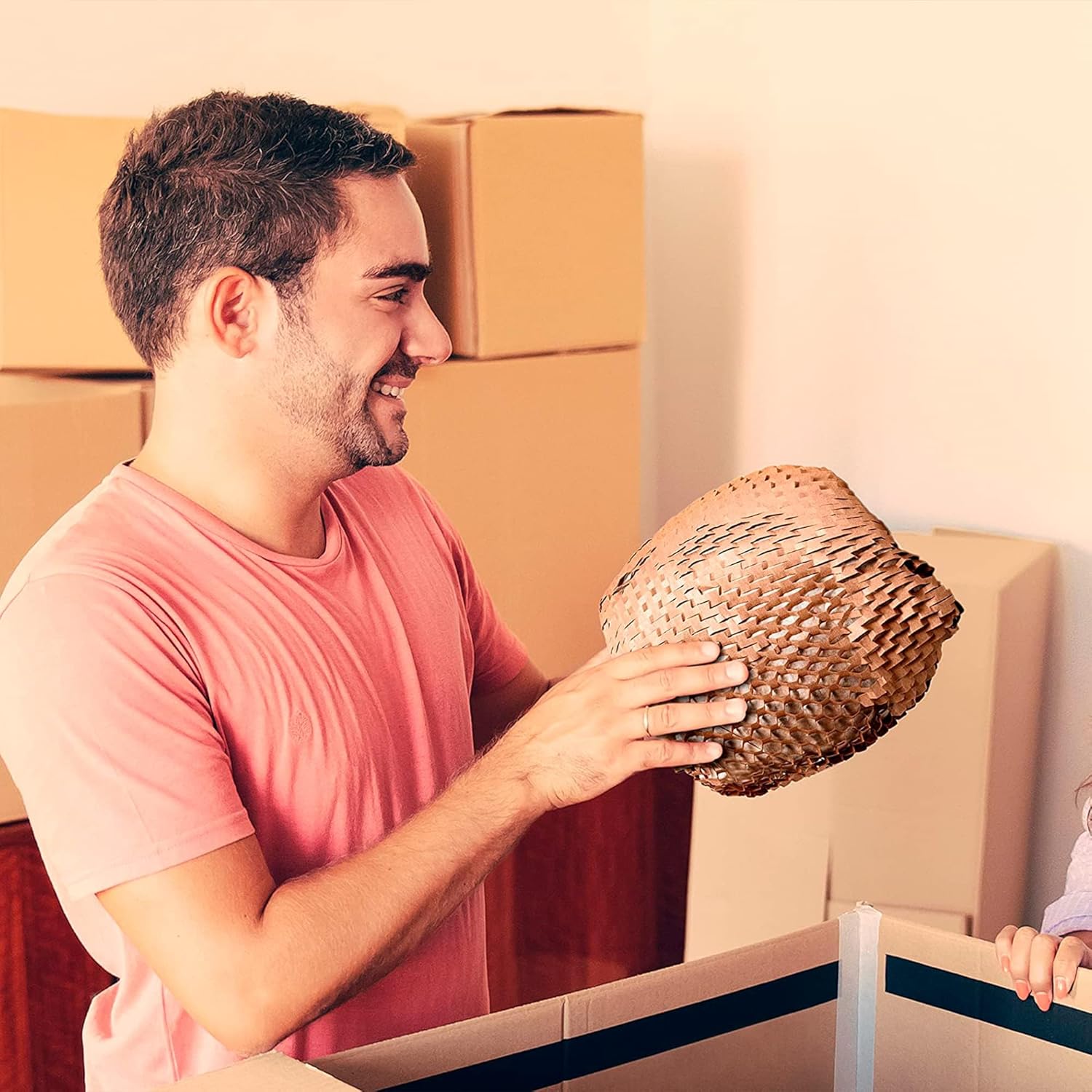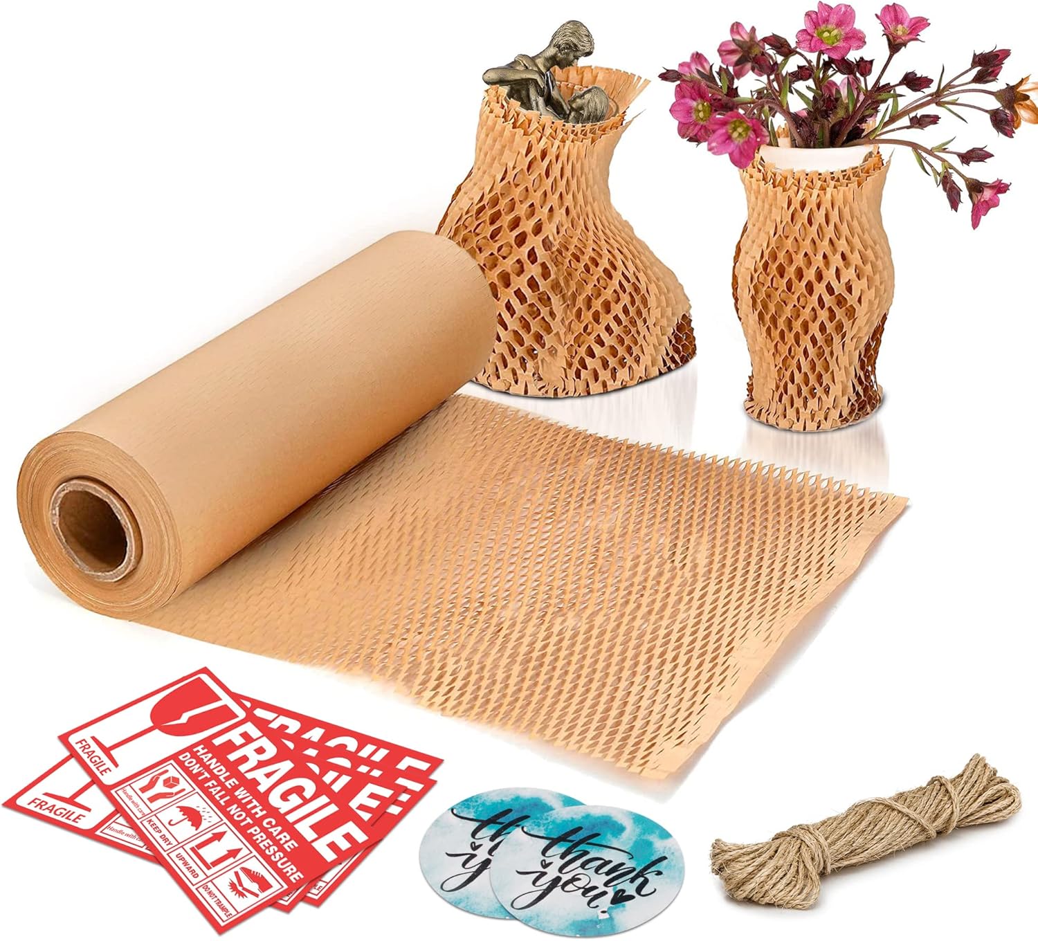 - No Fasteners Construction. Forget the hassle of glue; honeycomb paper wrap for packing attaches to itself. Flexible yet strong, the packing & moving supplies packing paper to wrap glass makes packing and unpacking a breeze.
