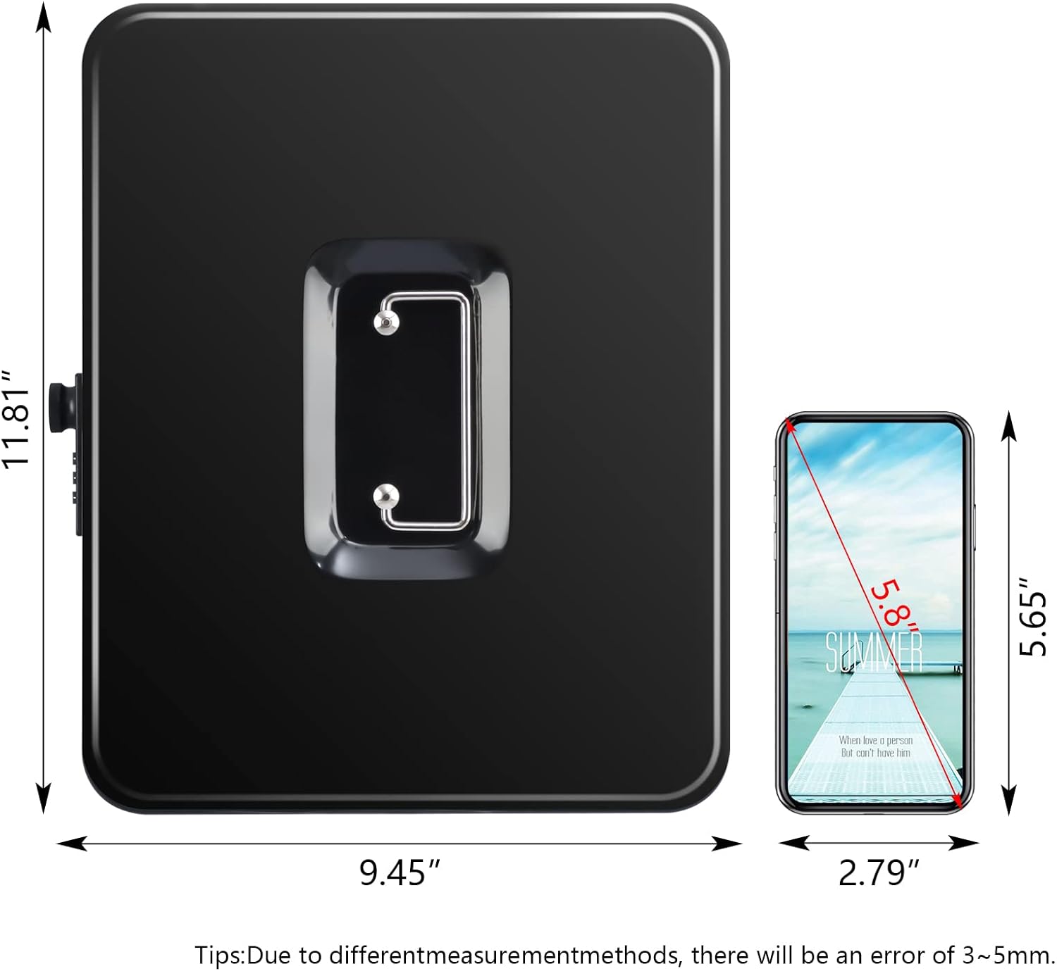 - SIZE AND COLOR: The size of the money safe box is 11.81"x 9.45"x 3.54" (300*240*90mm), and the color is black, a very classic and official color.