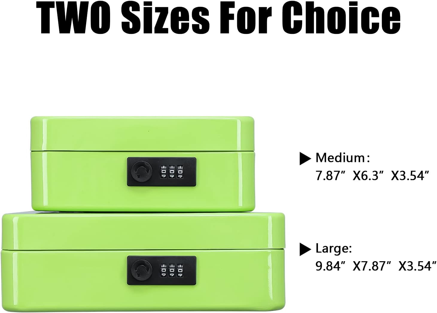 KYODOLED Cash Box with Combination Lock,Safe Metal Box for Money,Storage Lock Box with Money Tray,7.87"x 6.30"x 3.54" Limegreen Medium