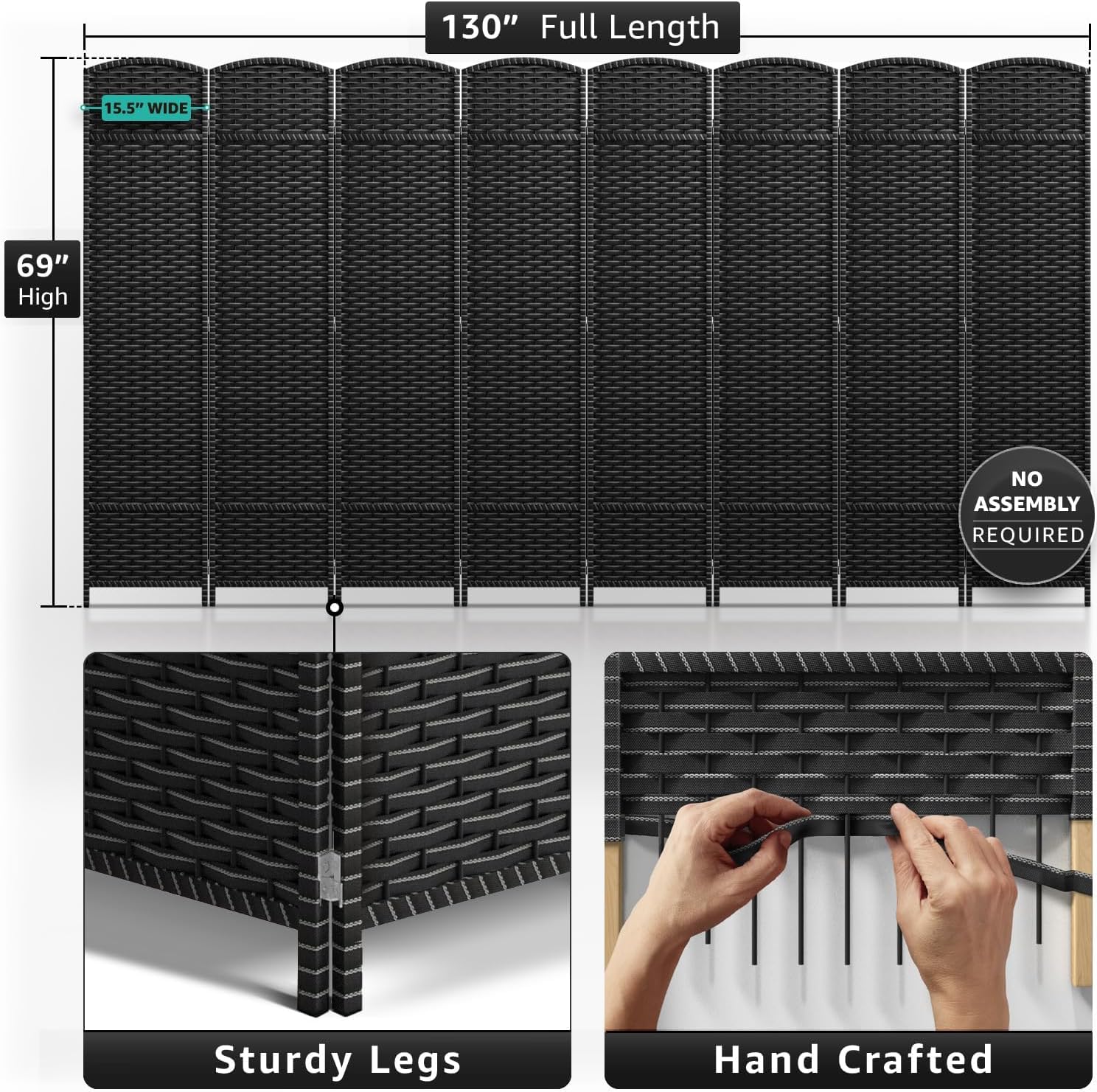 - Extra Wide Double Hinged Panels: Equipped with 8 panel 6 ft. tall double hinged panels, the room divider is extra wide for maximum coverage. Perfect as a privacy screen, it is also a great outdoor privacy screen freestanding overall unit measures 128 in x 69 in H