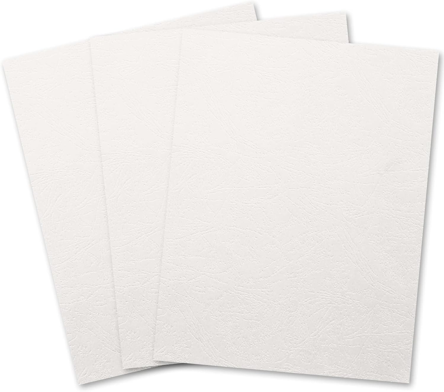 Binditek 100 Pack Grain Texture Paper Binding Presentation Covers, 13Mil, 90lb, Un-Punched, 8-1/2 x 11 Inches, Square Corners, White, Office Supplies