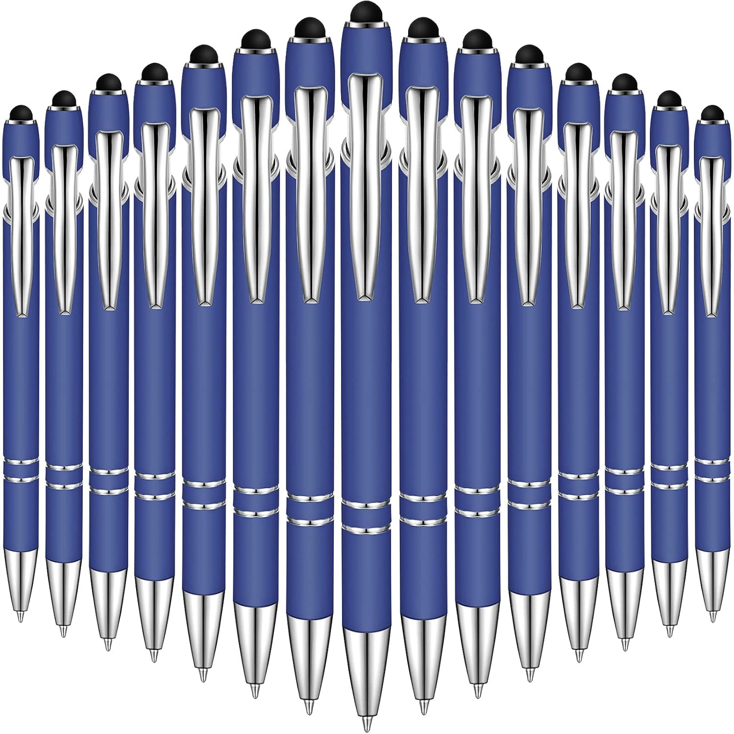 Zonon 38 Pieces Rubberized Ballpoint Pen with Stylus Tip Stylish Metal Pen Capacitive Styli with Soft Rubberized Grip, Black Ink for Most Devices(Dark Blue)