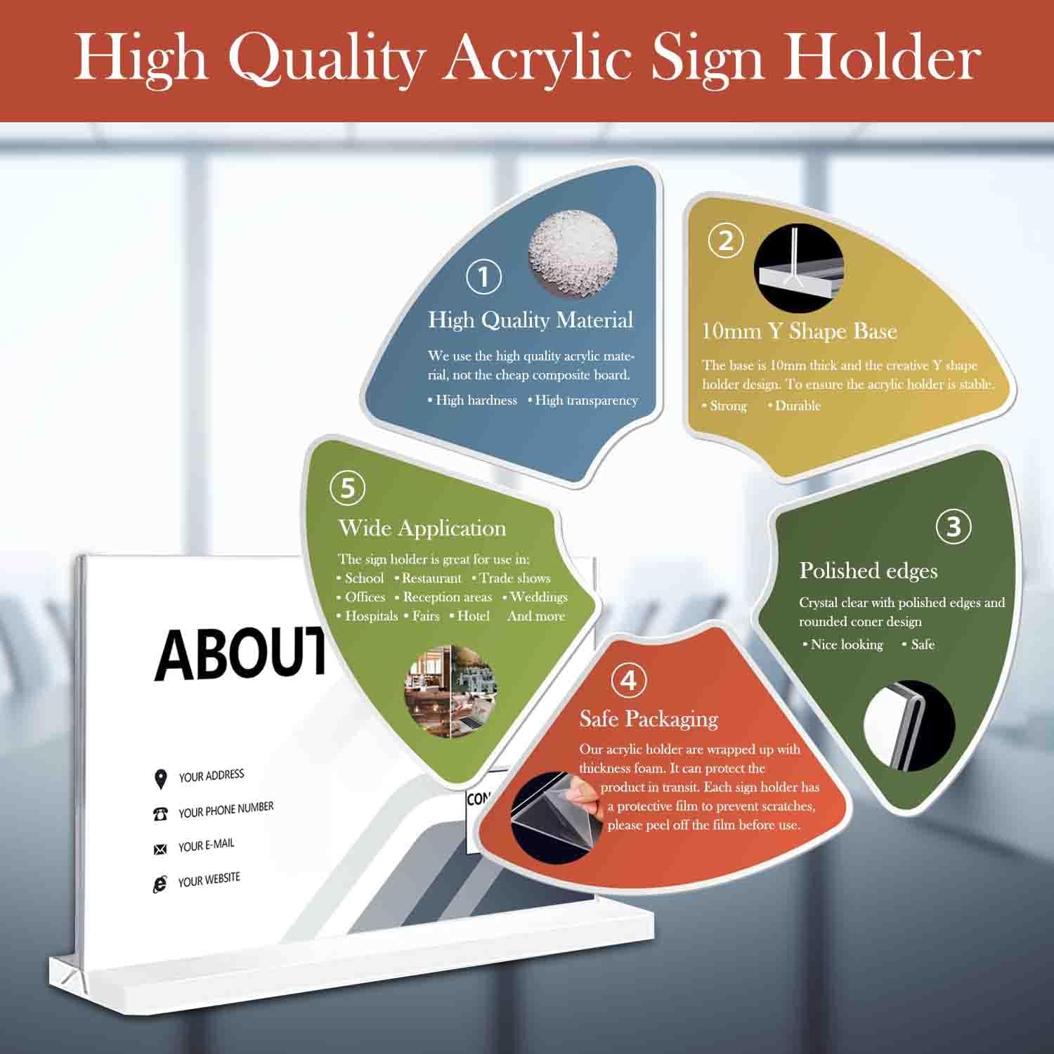 - 【High Quality】High-quality acrylic sign holder-made of smooth, ultra-clear, high-strength, excellent durability and scratch-resistant acrylic material, is strong enough to last for many years-light weight, but shatter-resistant. Perfect display and protection of content from scratches, stains and tears.