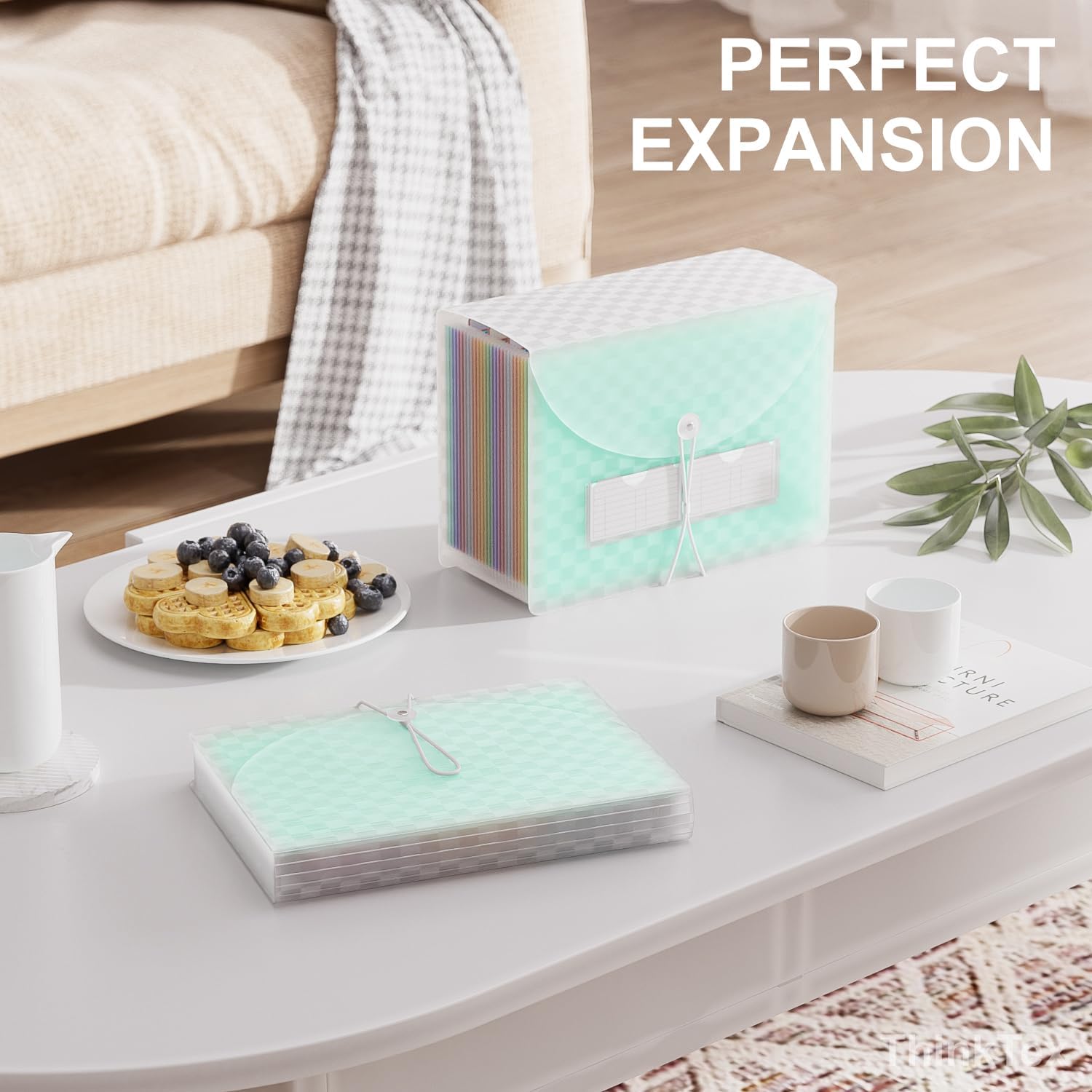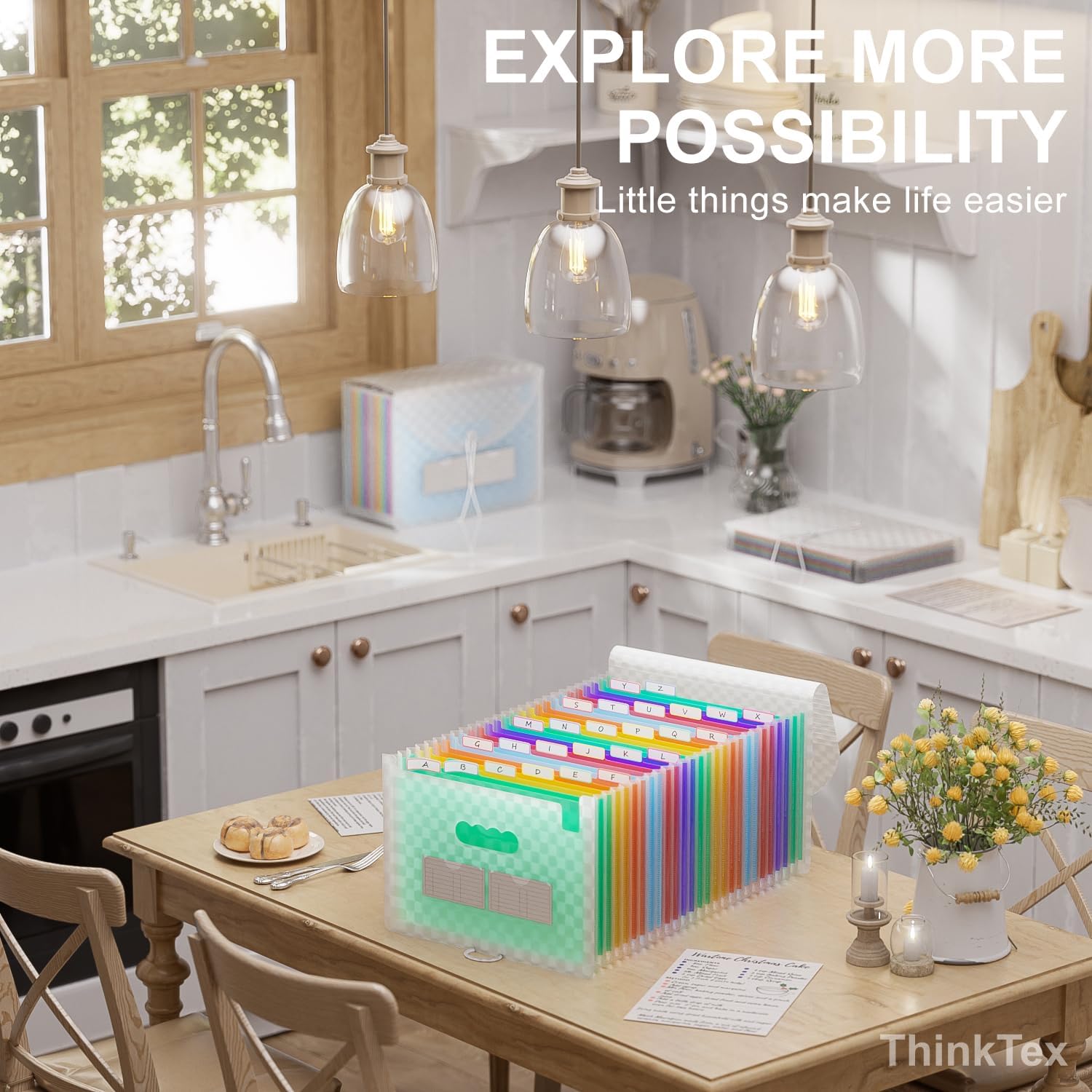 ThinkTex Accordion File Organizer, 26 Pockets Expanding File Folders, Monthly Bill Receipt Documents Organizer, A-Z Colorful Tabs, Letter/A4 Size - Green