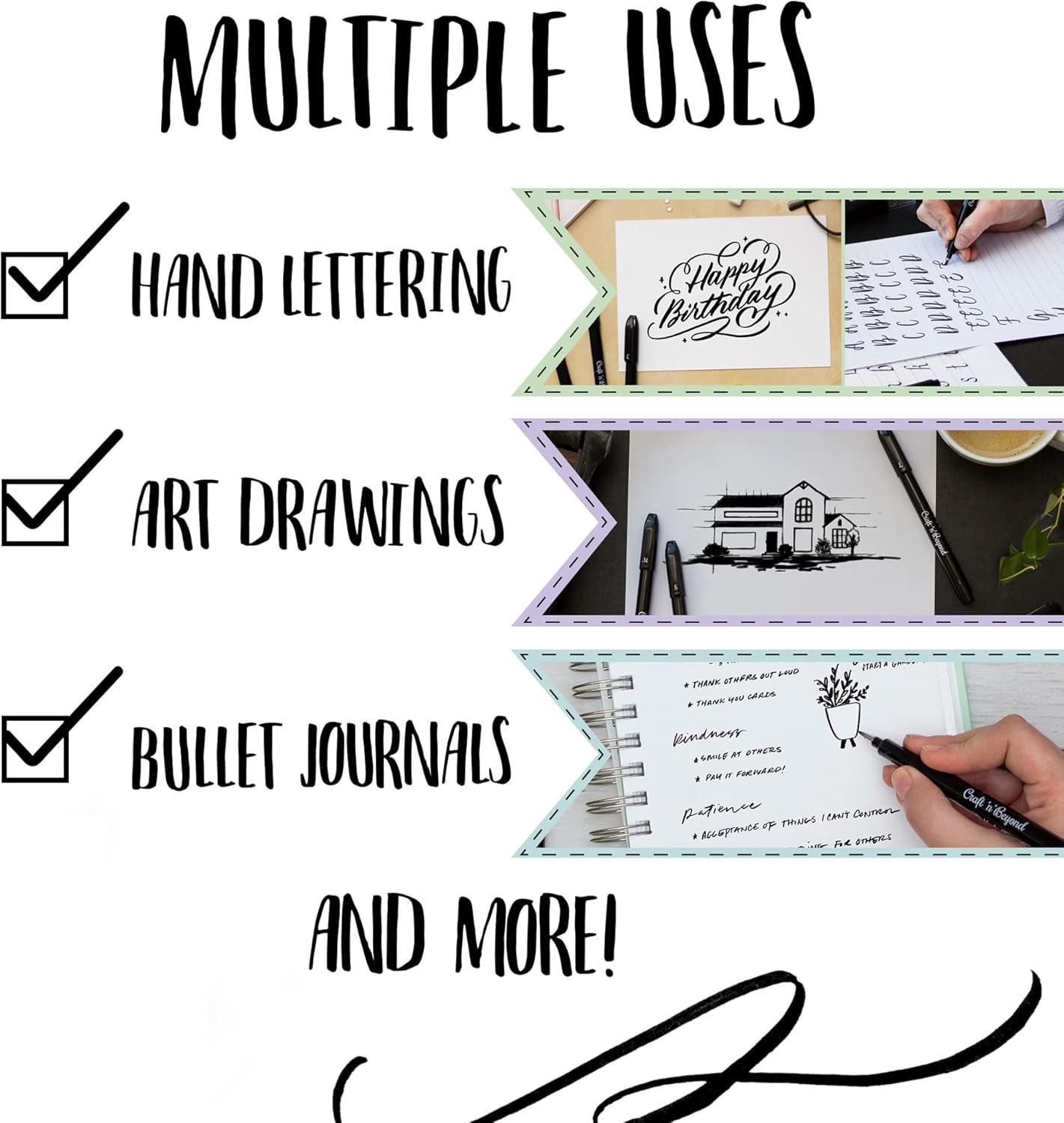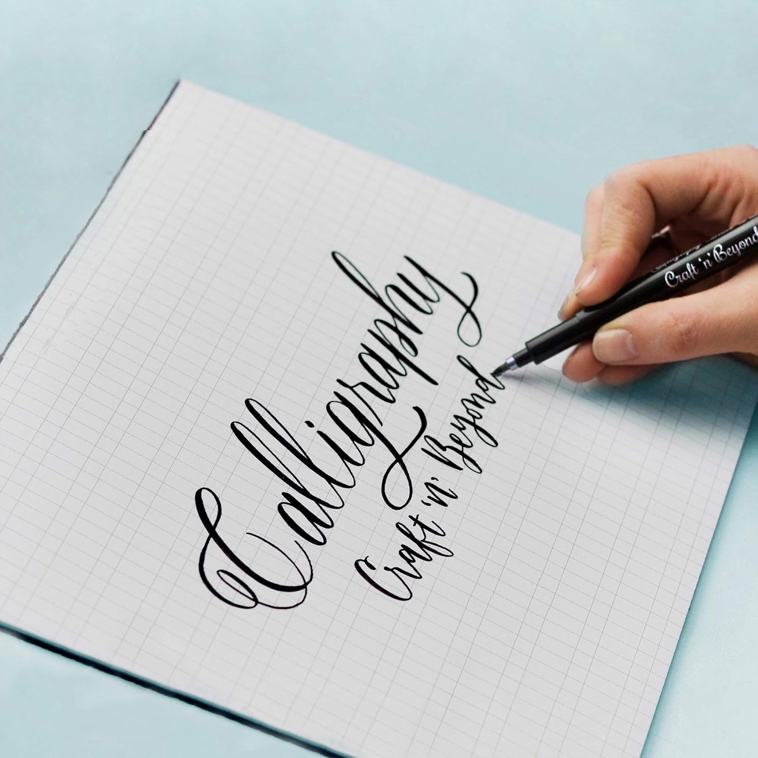 Craft 'n' Beyond Calligraphy Brush Pens Pack of 10 Markers for Hand Lettering, Art Drawing, Sketching, Scrapbooking, Journaling - Beginner Kit with Fadeproof Black Ink