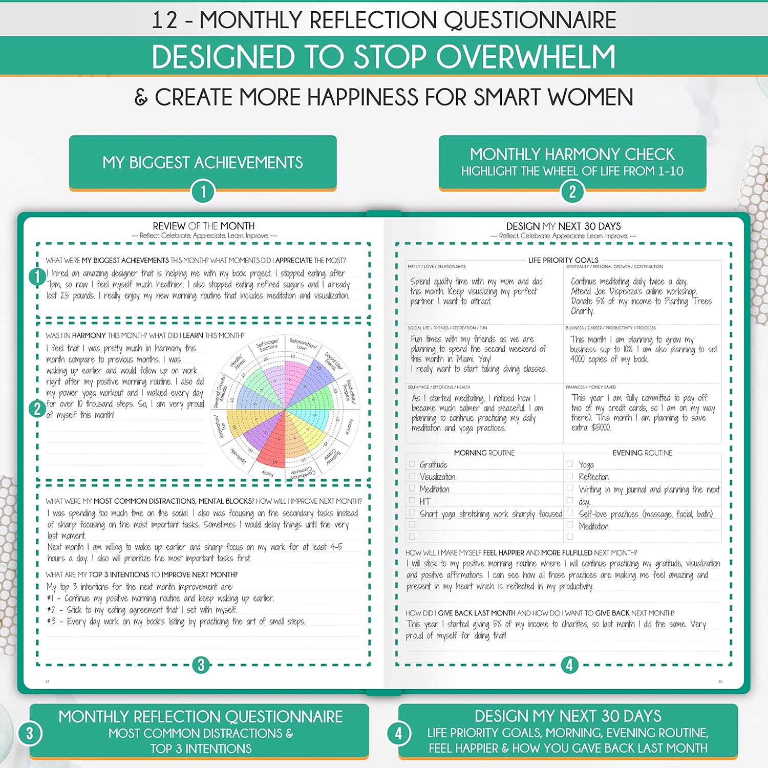 - UNDATED PLANNER - Luxurious and high-quality, suited for women, and ideal for entrepreneurs, professionals, college students, and anybody with a burning desire to achieve their objectives. No-questions-asked money-back guarantee