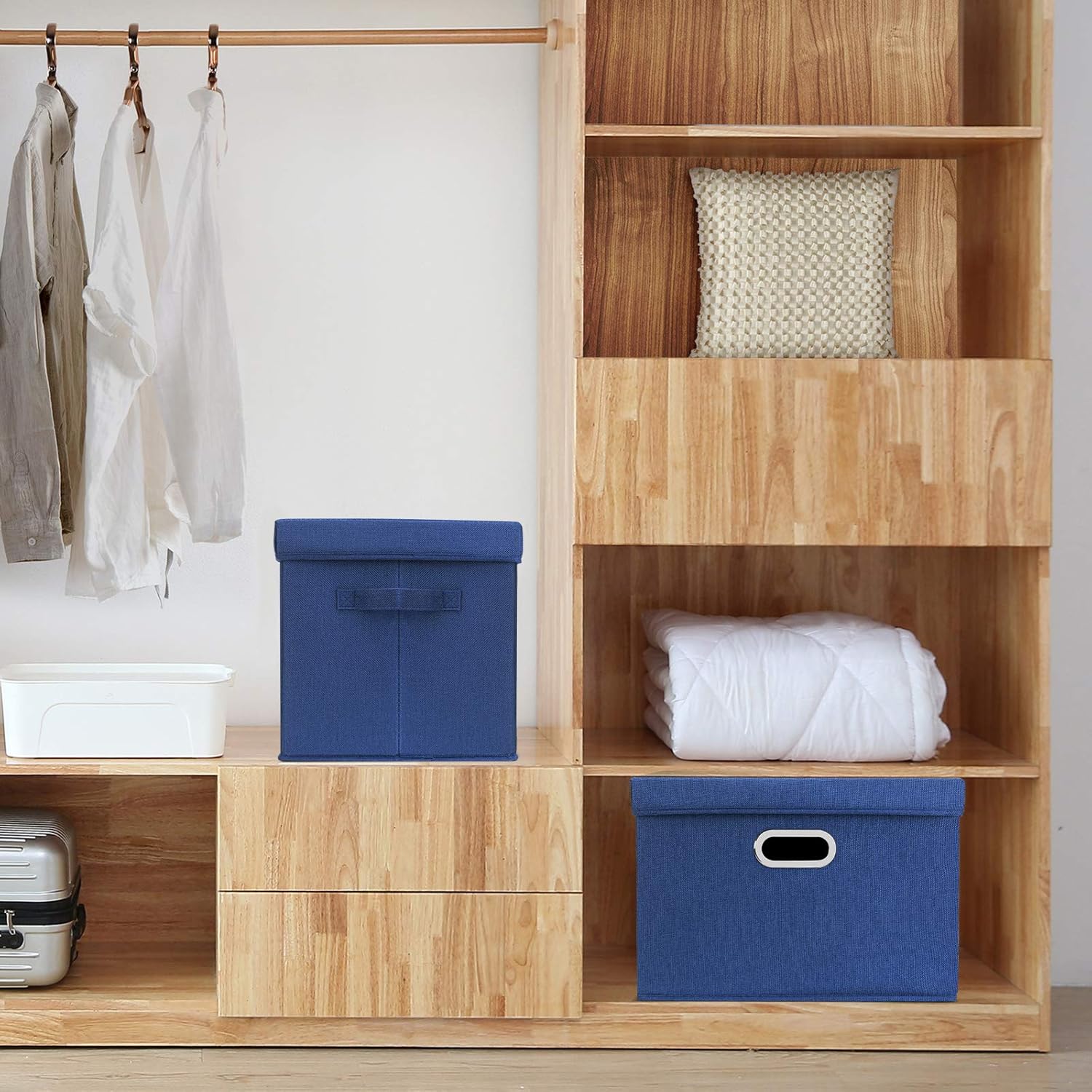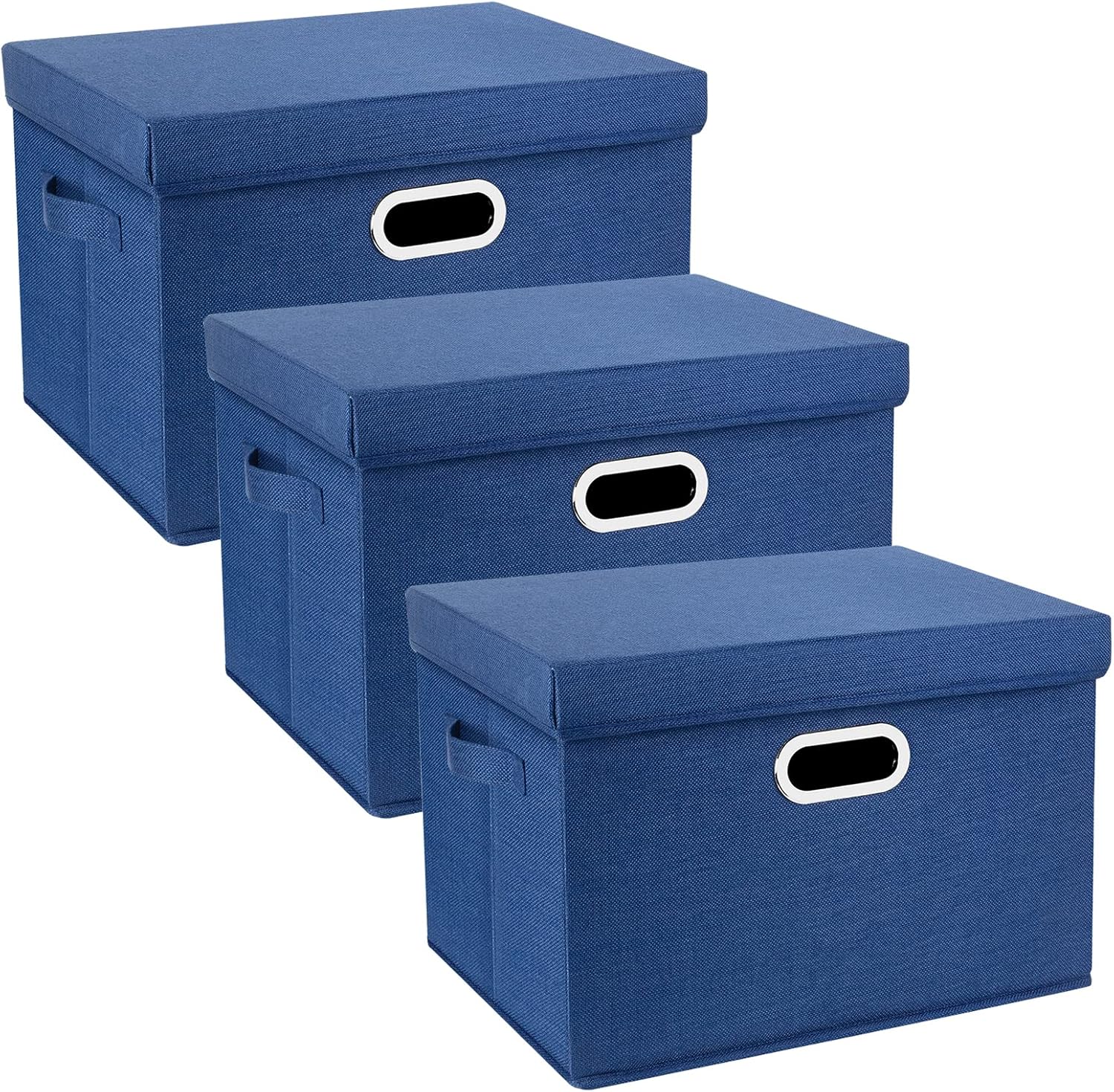 TYEERS Large Storage Bins with Lids, Collapsible, Washable, Fabric Storage Boxes for Organizing, 17.3x11.8x11.4 inches, 3 Pack, Classic Blue
