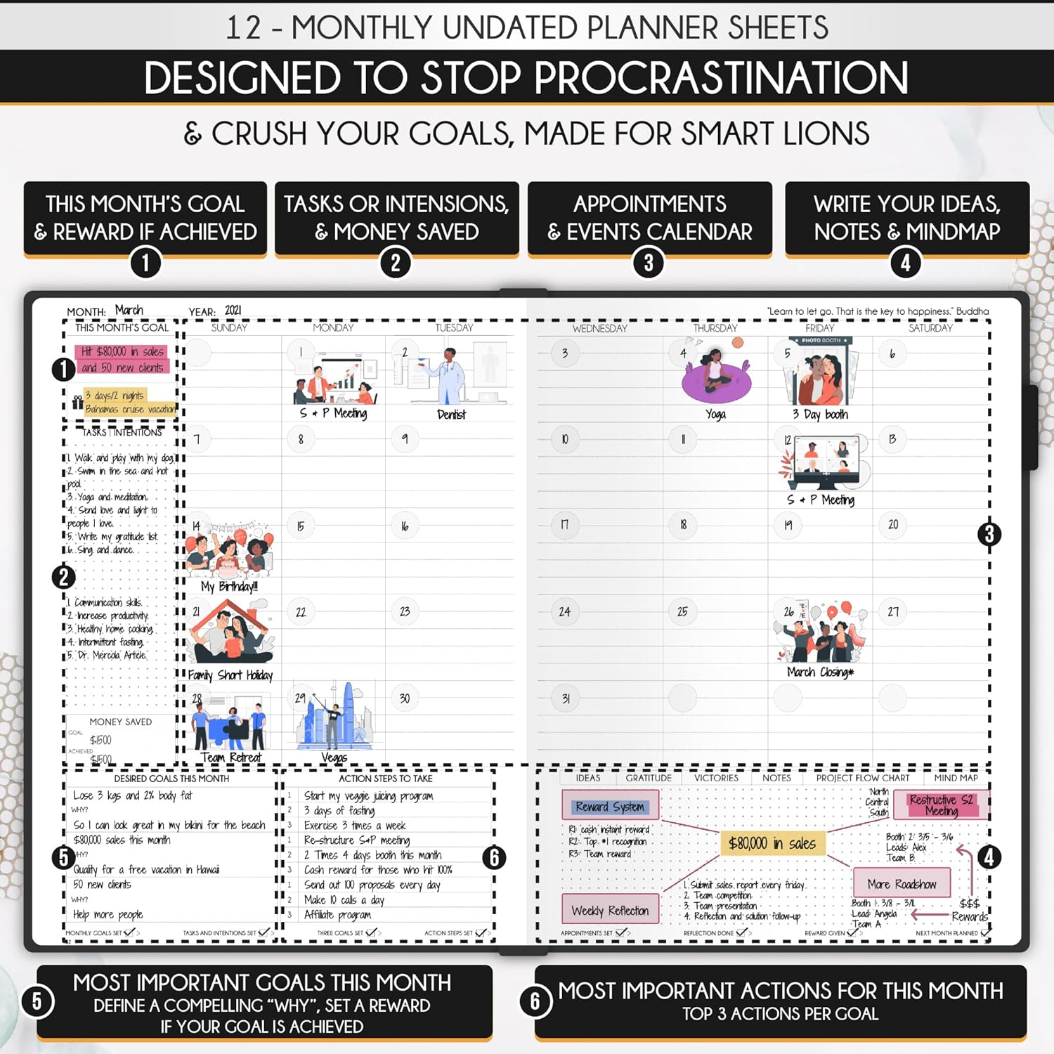 - UNDATED PLANNER - Luxurious and high-quality, suited for women, and ideal for entrepreneurs, professionals, college students, and anybody with a burning desire to achieve their objectives. No-questions-asked money-back guarantee