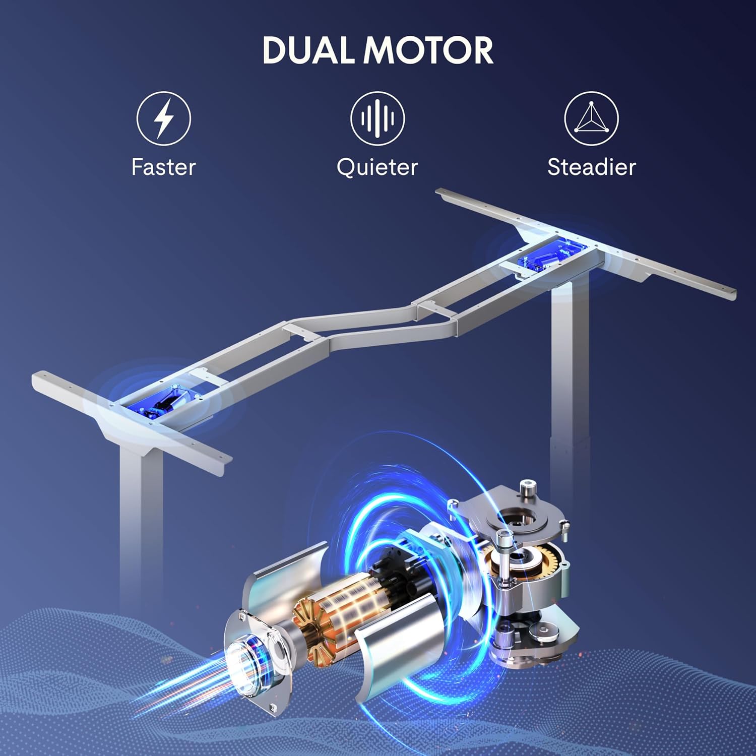 - 【ELECTRIC HEIGHT ADJUSTABLE LIFT SYSTEM】The dual-motor lift mechanism offers smooth height adjustments, ranging from 28.9" to 48.2" (including 1" desktop thickness), and operates quietly (under 50 dB) while lifting and lowering the desk.