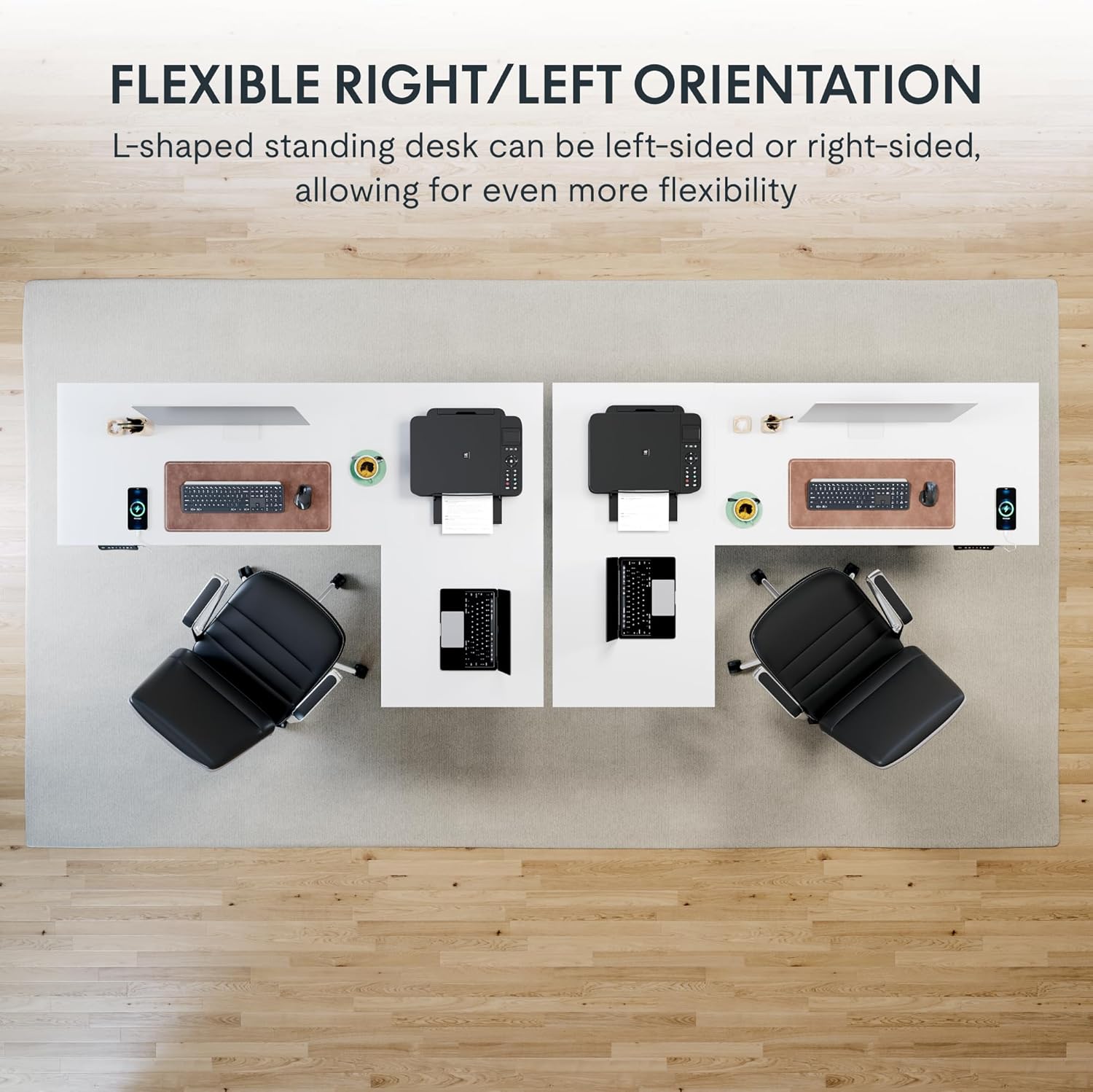 FLEXISPOT Corner Desk Dual Motor L Shaped Computer Electric Standing Sit Stand Up Desk Height Adjustable Home Office Table with Splice Board, 71x48 White