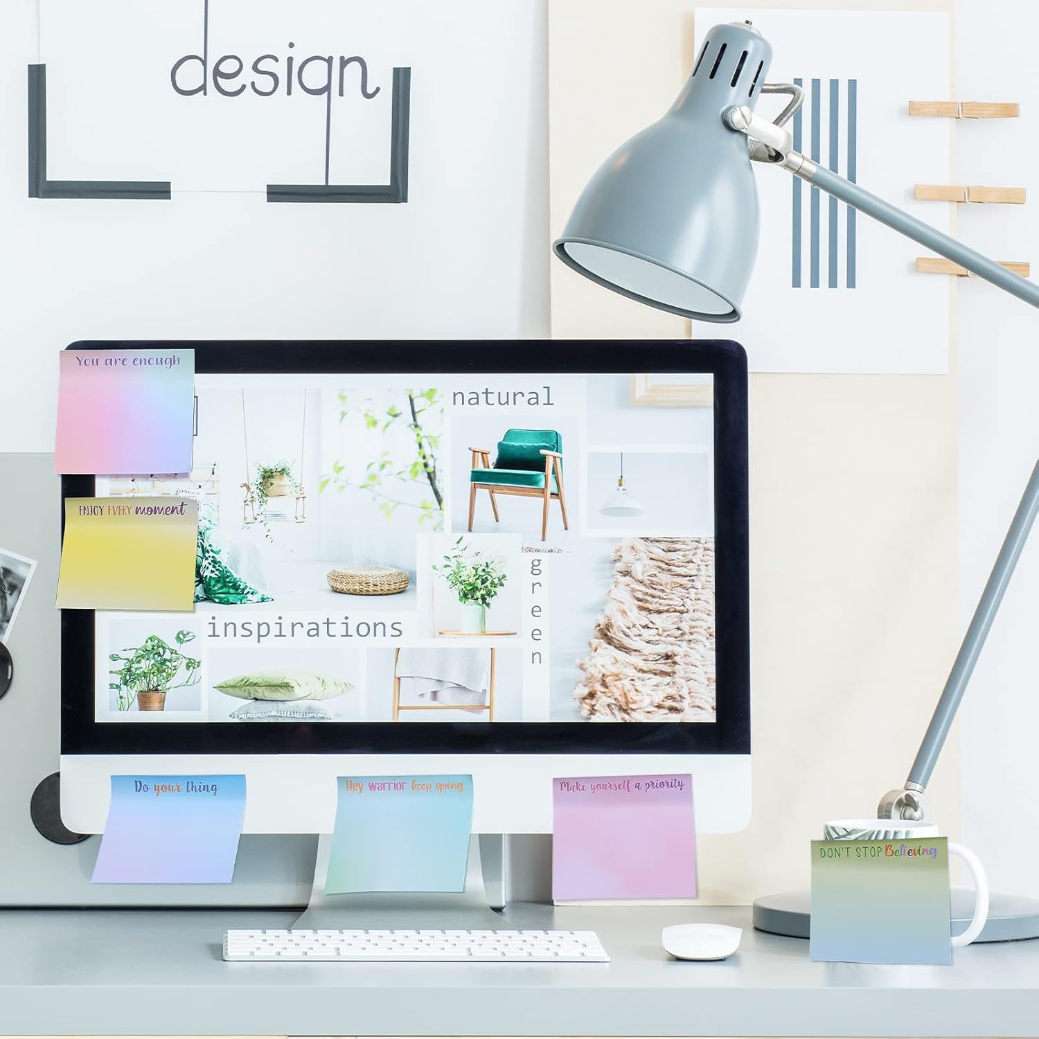 - Package Includes: you will receive 12 packs of inspirational sticky notes in various colors and printed with 12 motivational sentences, 50 piece for each pack,600 sheet in total, the size of each self sticky note is about 3 x 3 inches/ 7.6 x 7.6 cm; Sufficient quantity and various designs can meet your daily use and replacements, and you can share them with your friends and colleagues