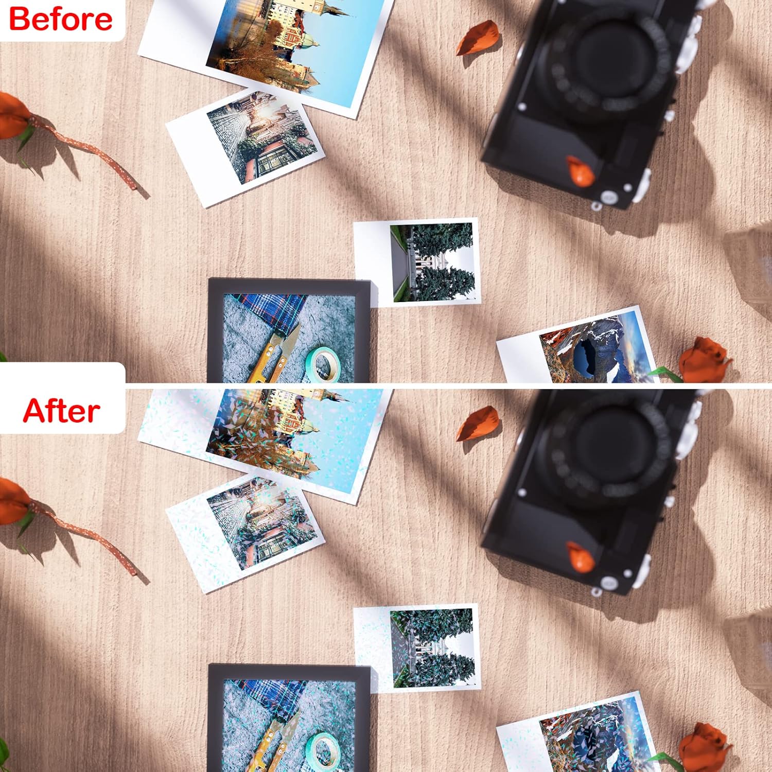 - GLITTER-EFFECT: The holographic-laminate sheets is designed with gem-patterns, which will present different colors and refléctions according to light and angle. Perfect to be pasted on the surface of photos and make them sparklé like diamönds