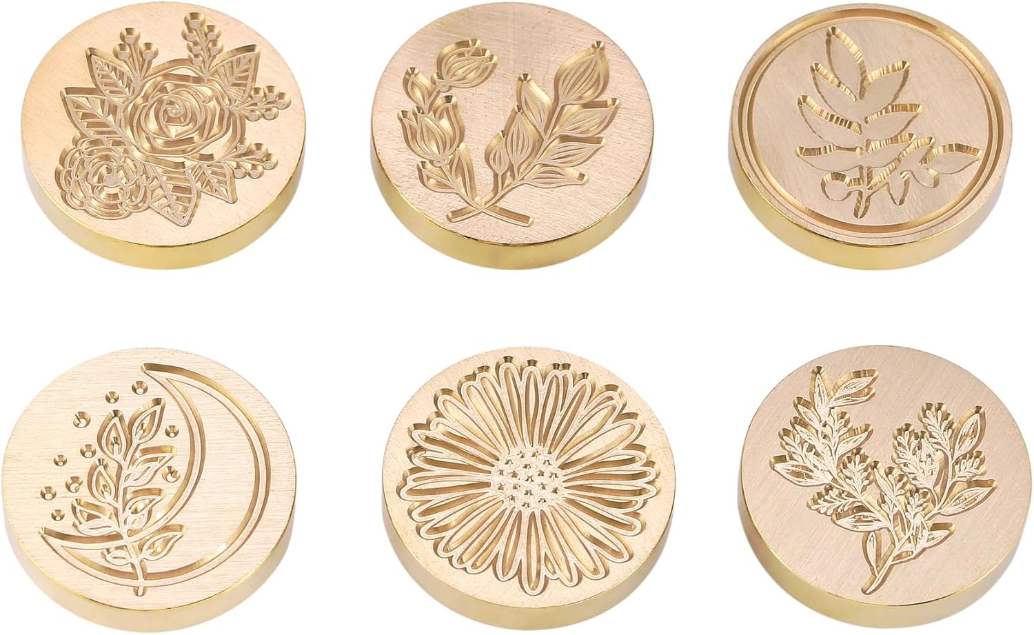 - Package Includes: You will get 1 wooden handle and 6 different pattern wax seal stamp (eucalyptus, sunflower, rose, moon and leaves, leaf, flower). Different wax seal stamp to meet your different needs in daily