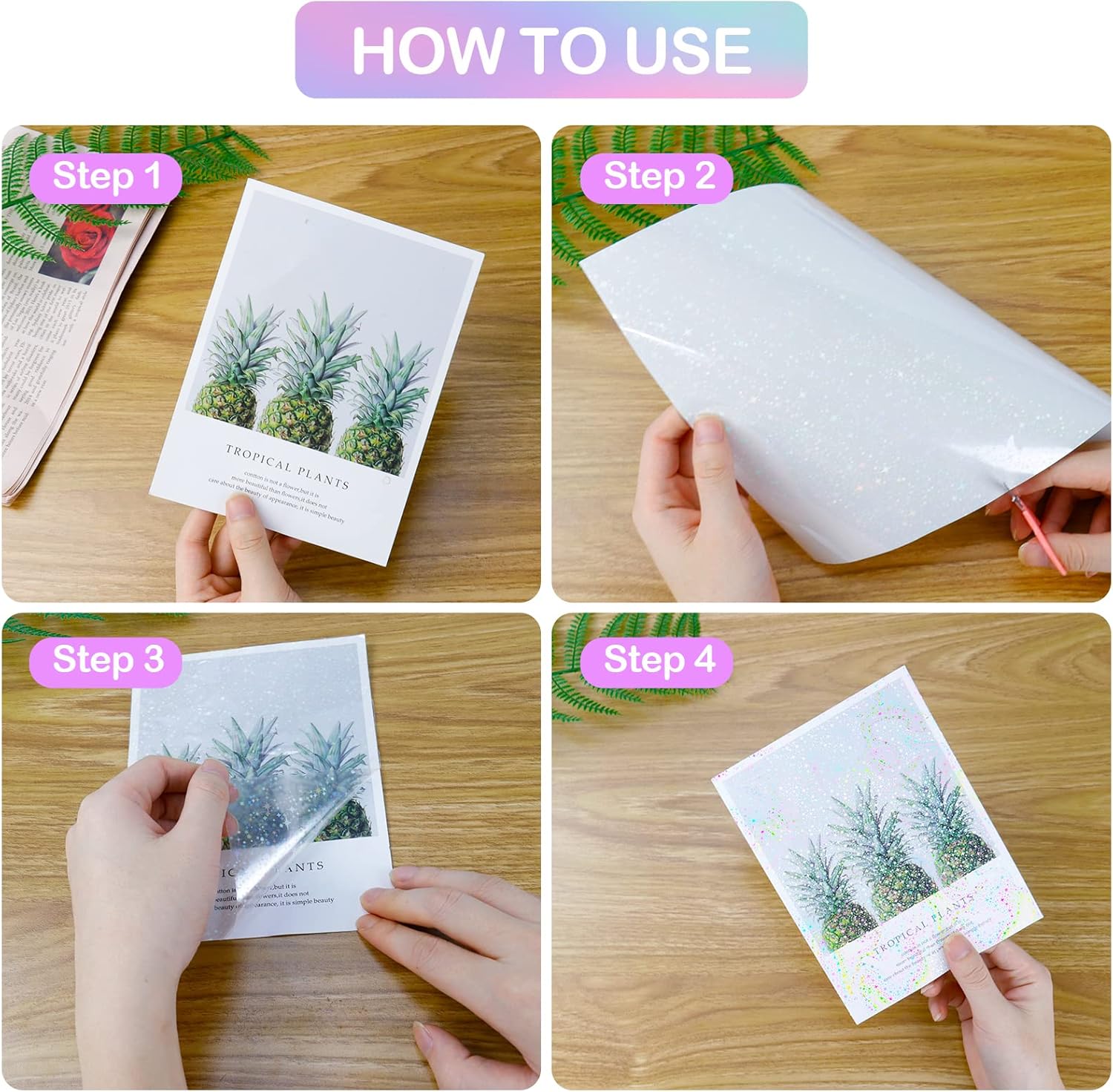 - STRONG SELF-ADHESIVE & WATERPROOF: Made of waterproof material, our holographic-paper has waterproof performance. Adhesive backing makes it firmly-adhered to all types of items, just like a sticker. Easy to use and decorate most items without peeling off