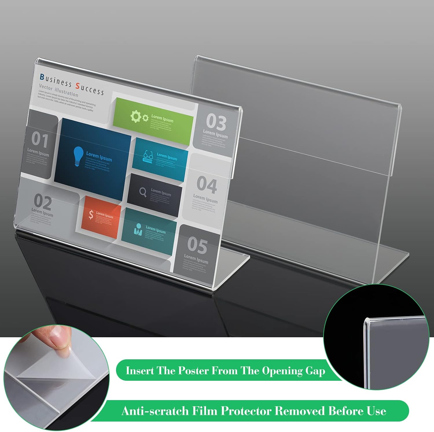 - Practical design: these clear plastic display frames are designed with a slant back, which can make your visual effect clearer; At the same time, they are not easy to reflect light, which can make it easier for you to browse the displayed content, pictures and posters; The sturdy base design makes these holders easy to stand, bringing you a good using experience