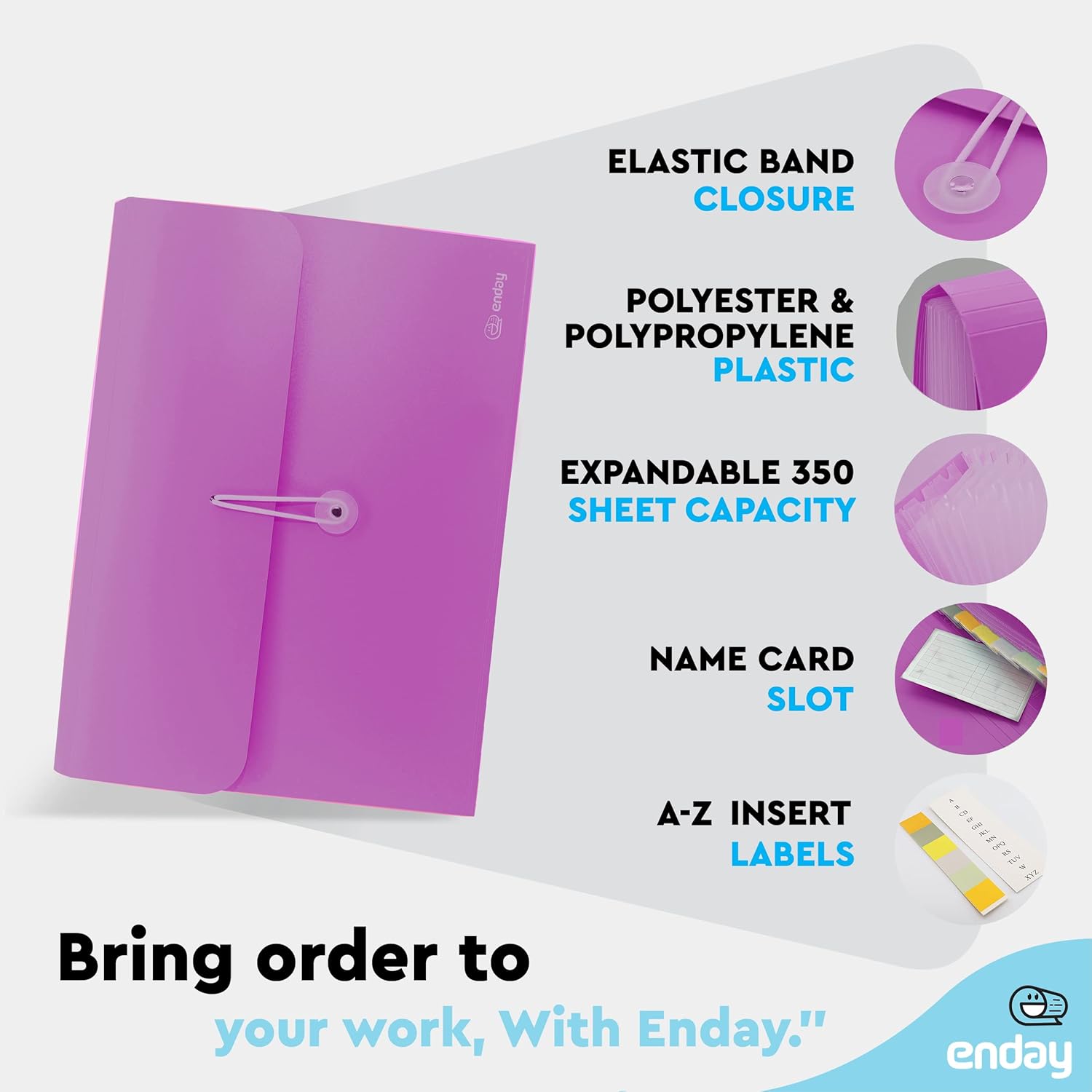 - ✓QUALITY – This alphabetical file folder is made from quality polyester & polypropylene plastic for the customers satisfaction. The materials are durable, resistant to breaking and from getting misshapen. With a water-resistant lid and secure, elastic band closure, the file holder will keep its inner contents safe.