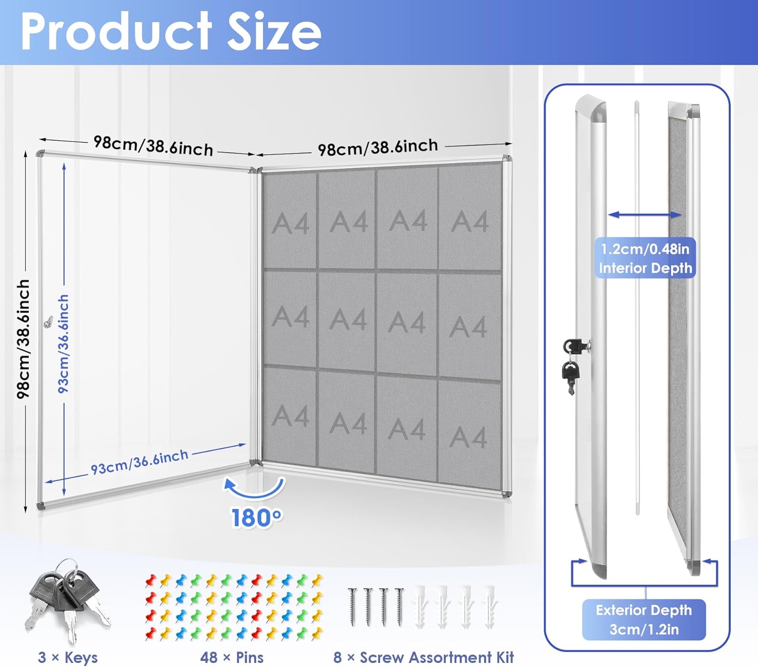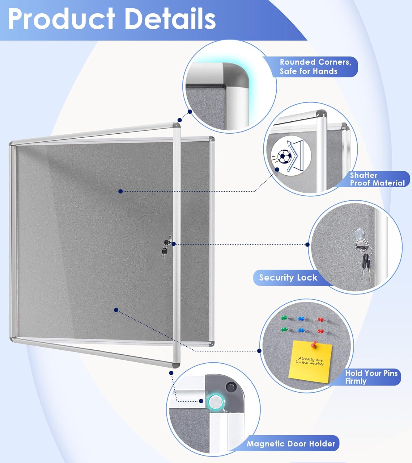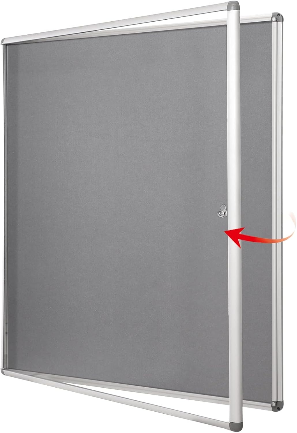SWANCROWN Lockable Felt Bulletin Indoor Display Case Big Message Center Board with Aluminium Frame,38x38 inches (12xA4)