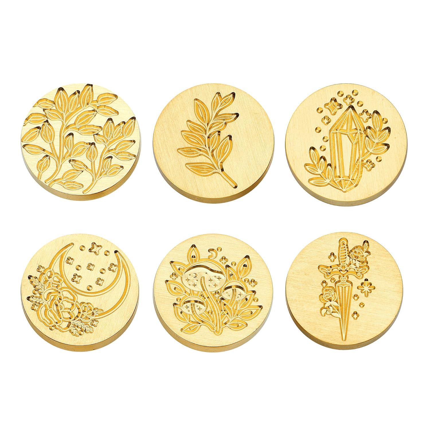 - Wax Seal Stamp Size: Stamp head diameter: 25mm/0.98''; total lenght of the stamp: 90mm/3.54''. Packing includes: 6 x 25mm wax seal stamp heads (leaf, leaves, crystal & plant, moon & flower, mushroom, rose & sword) + 1 x wooden handle + 1 x gift box (not including sealing wax).