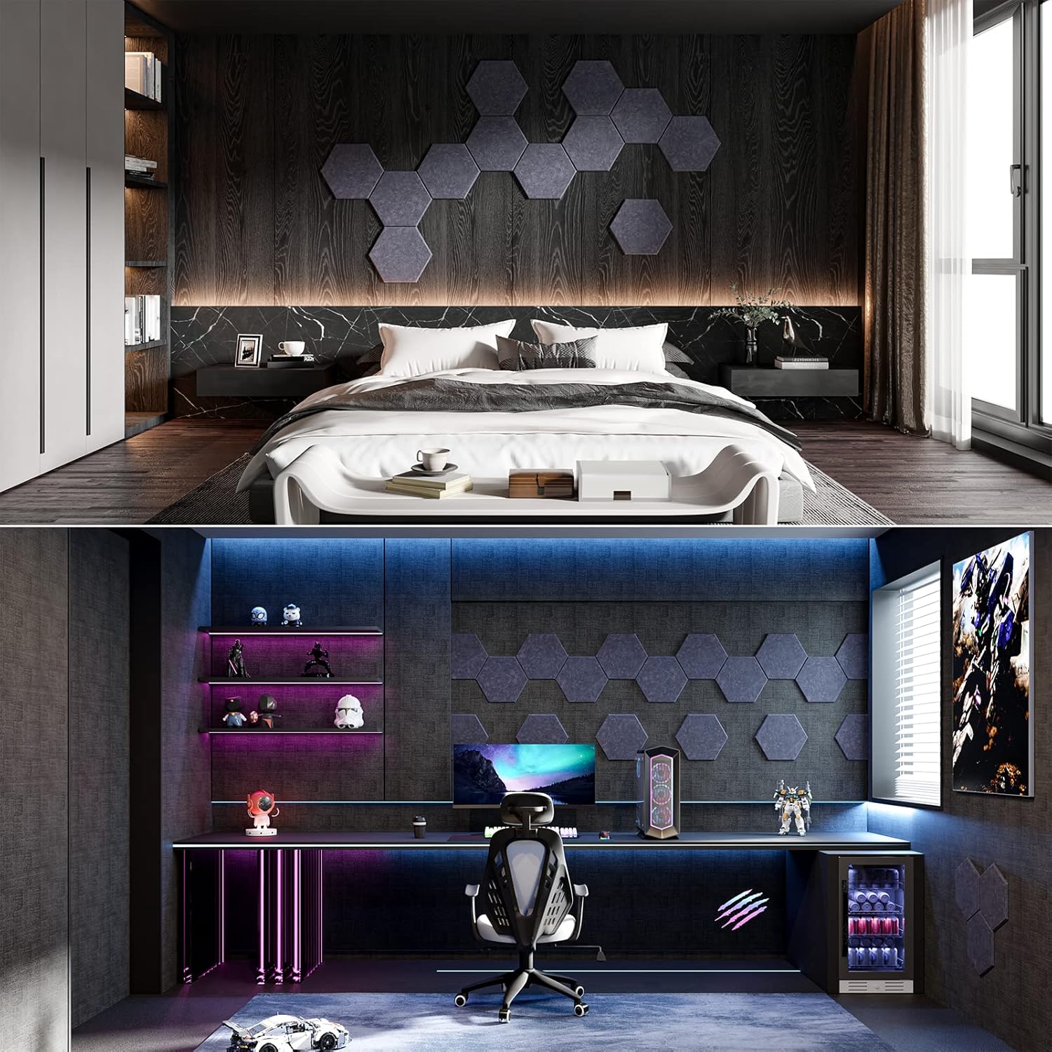 - 【Stylish Decoration】This unique hexagonal soundproof wall panels adopt beveled edge design, you can hang them like art or accents around your room or apartment. These panels are generally pretty lightweight and come in a variety of colors to match your decor.