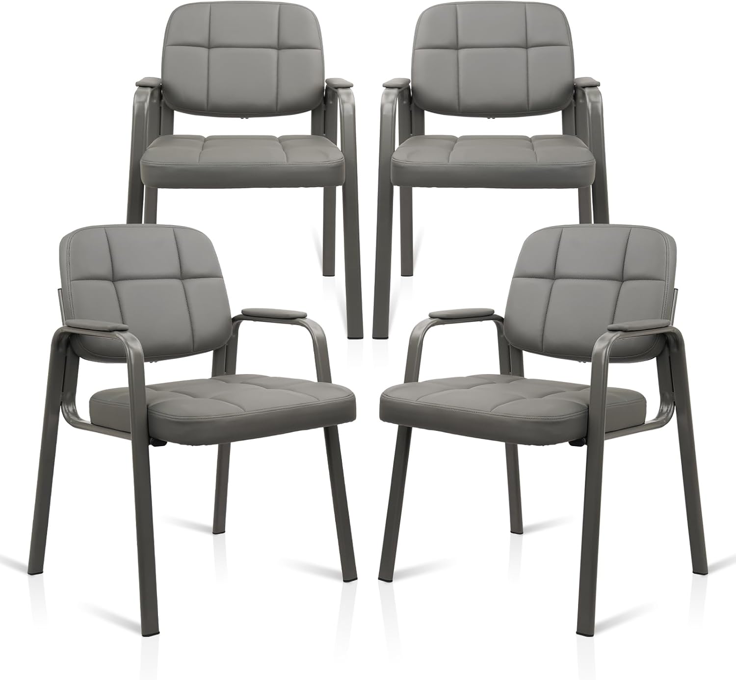 CLATINA Waiting Room Guest Chair with Bonded Leather Padded Arm Rest for Office Reception and Conference Desk(Grey 4 Pack)