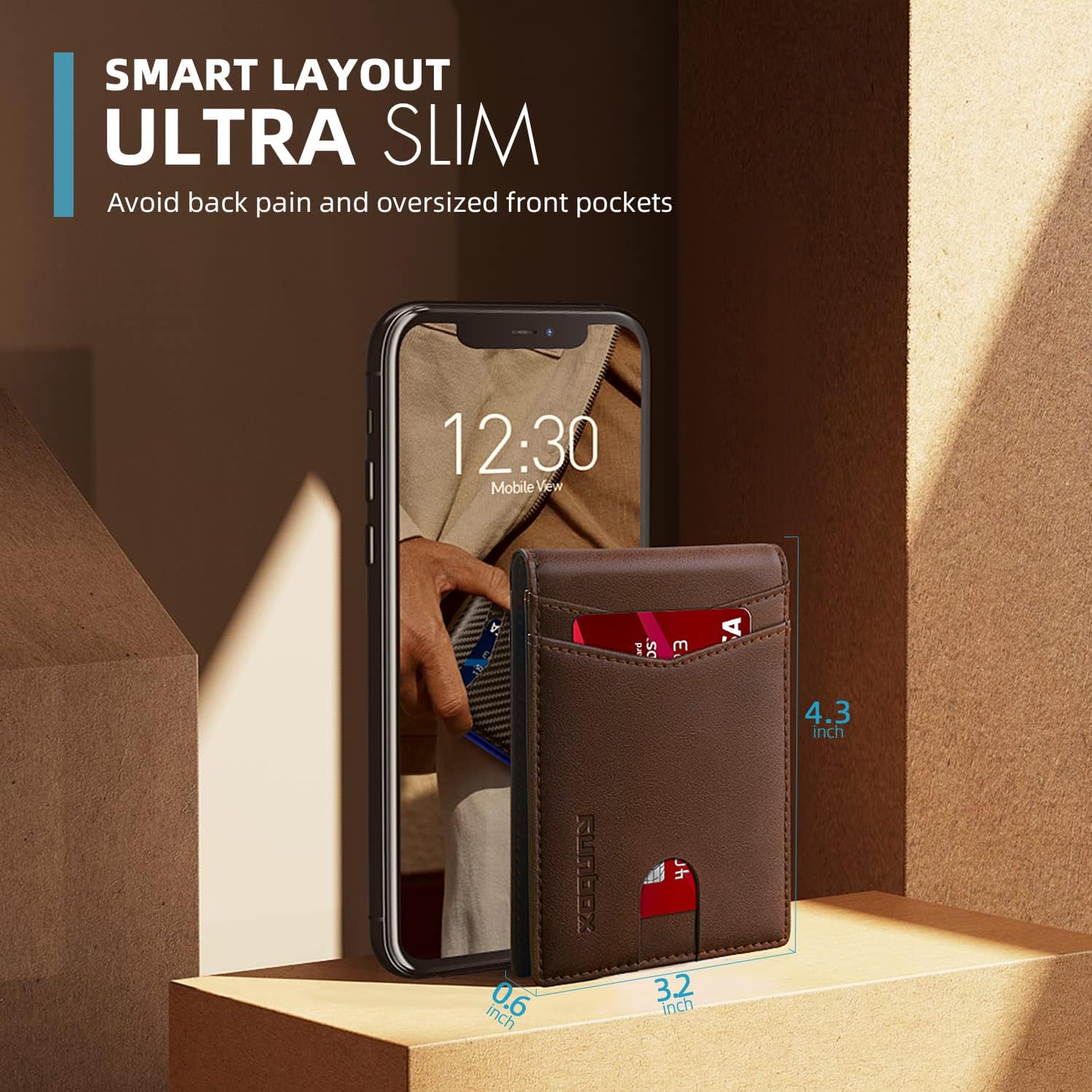 • Slim and thin Wallet- The Minimalist wallet measures 4.3x3.2x0.6 inches and stores up to 15 cards. The thin wallet perfectly fits in your pocket and is well-suited for everyday carry.