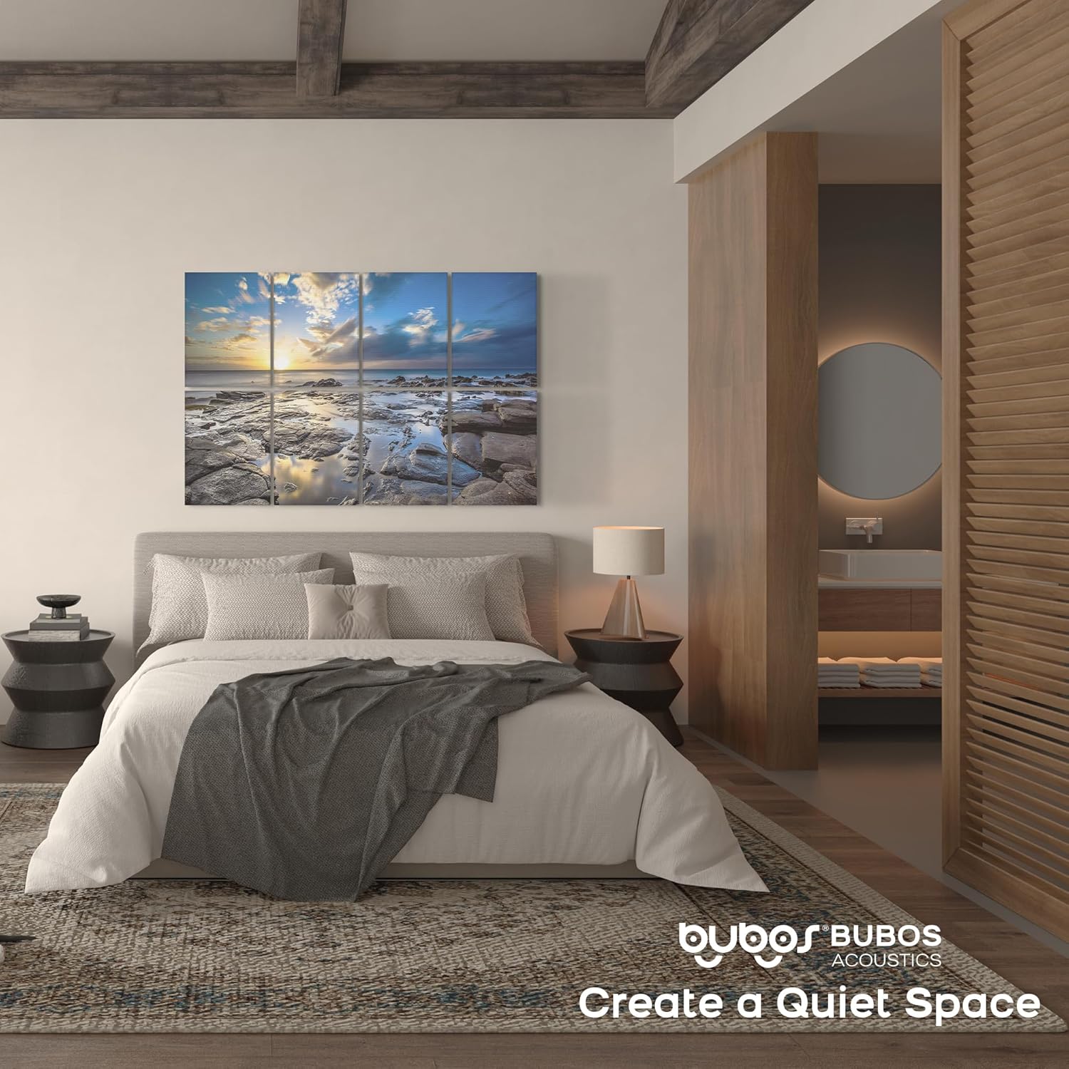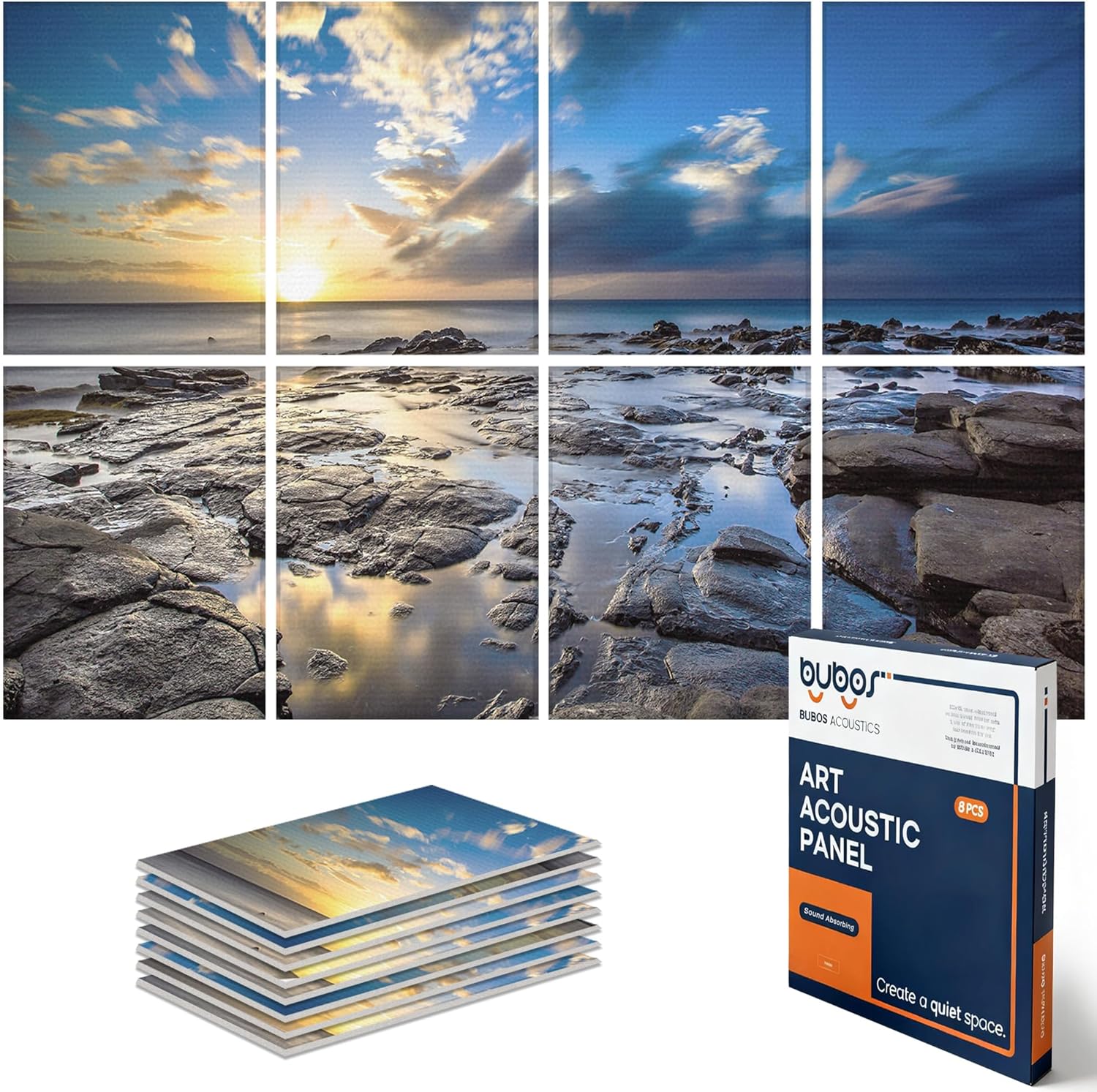 BUBOS 8 Pack Art Acoustic Panels Soundproof Wall Panel,47.2X31.4 Inches Sound Absorbing Panel,Self-adhesive Decorative Acoustical Wall Panels, Acoustic Treatment for Ceiling Home Office (Coastal rock)