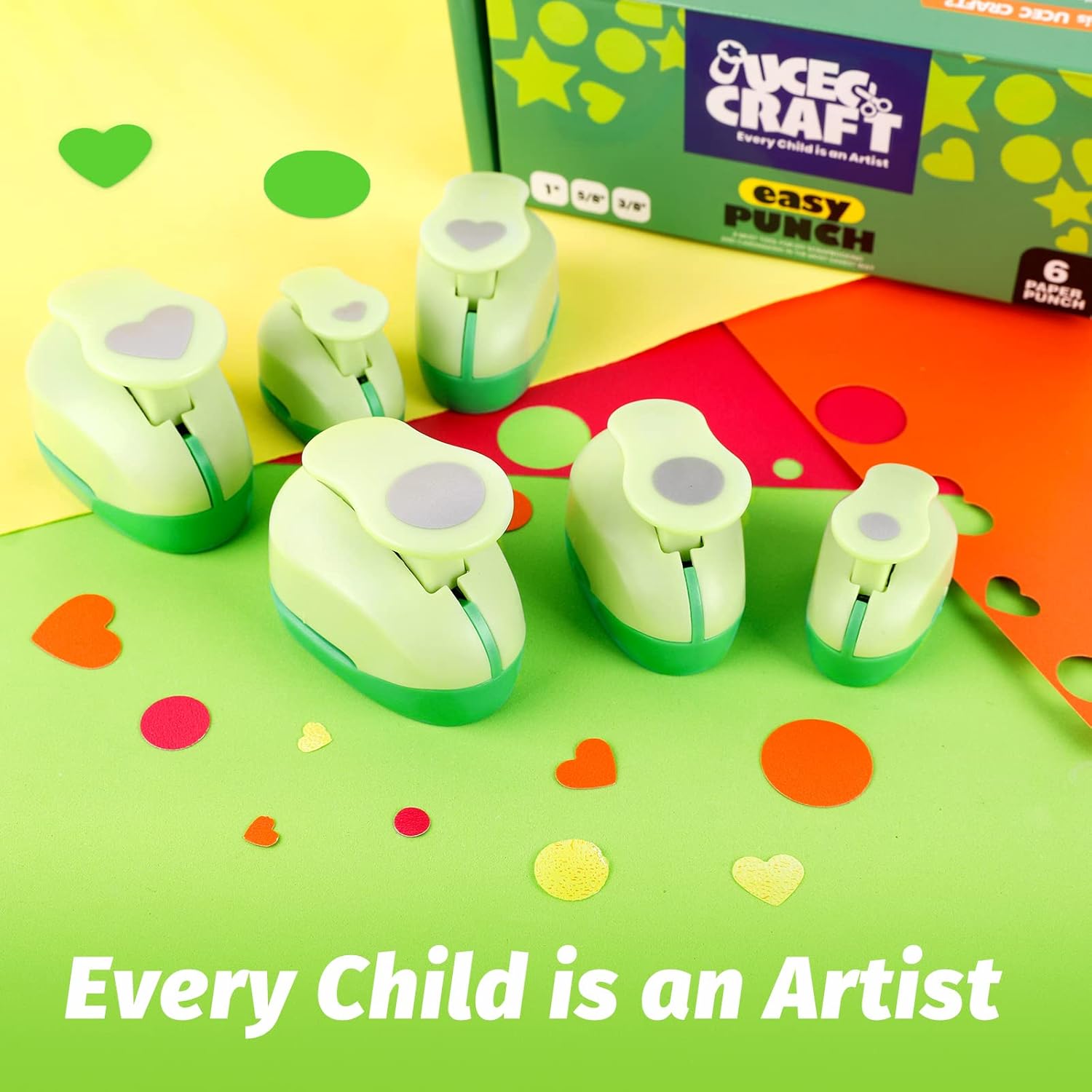 UCEC Circle Hole Punch, Paper Punches for Crafting, 3/8+5/8+1 Inch Circle Punches, Heart Hole Punch, Shape Puncher Cutter for Paper Crafts Scrapbooking, 6Pcs