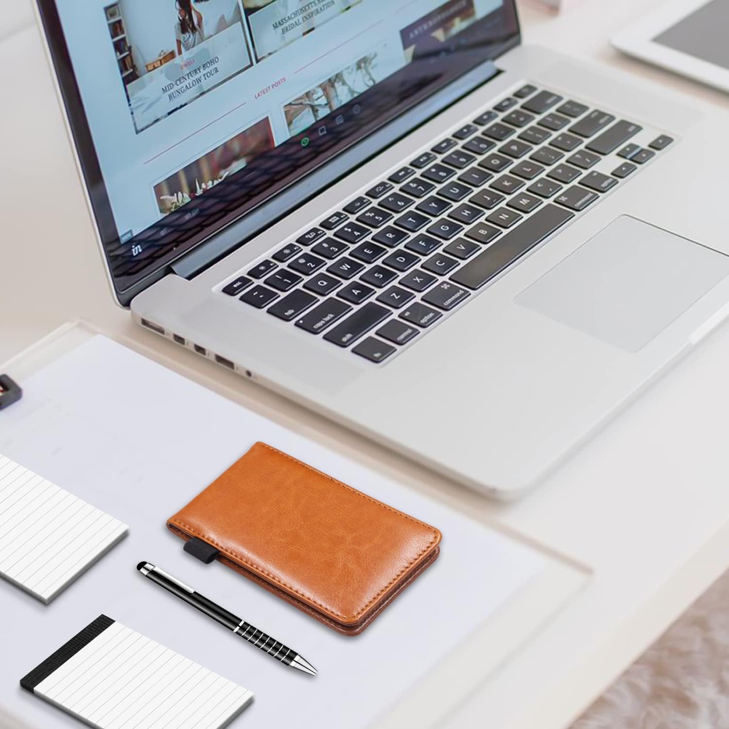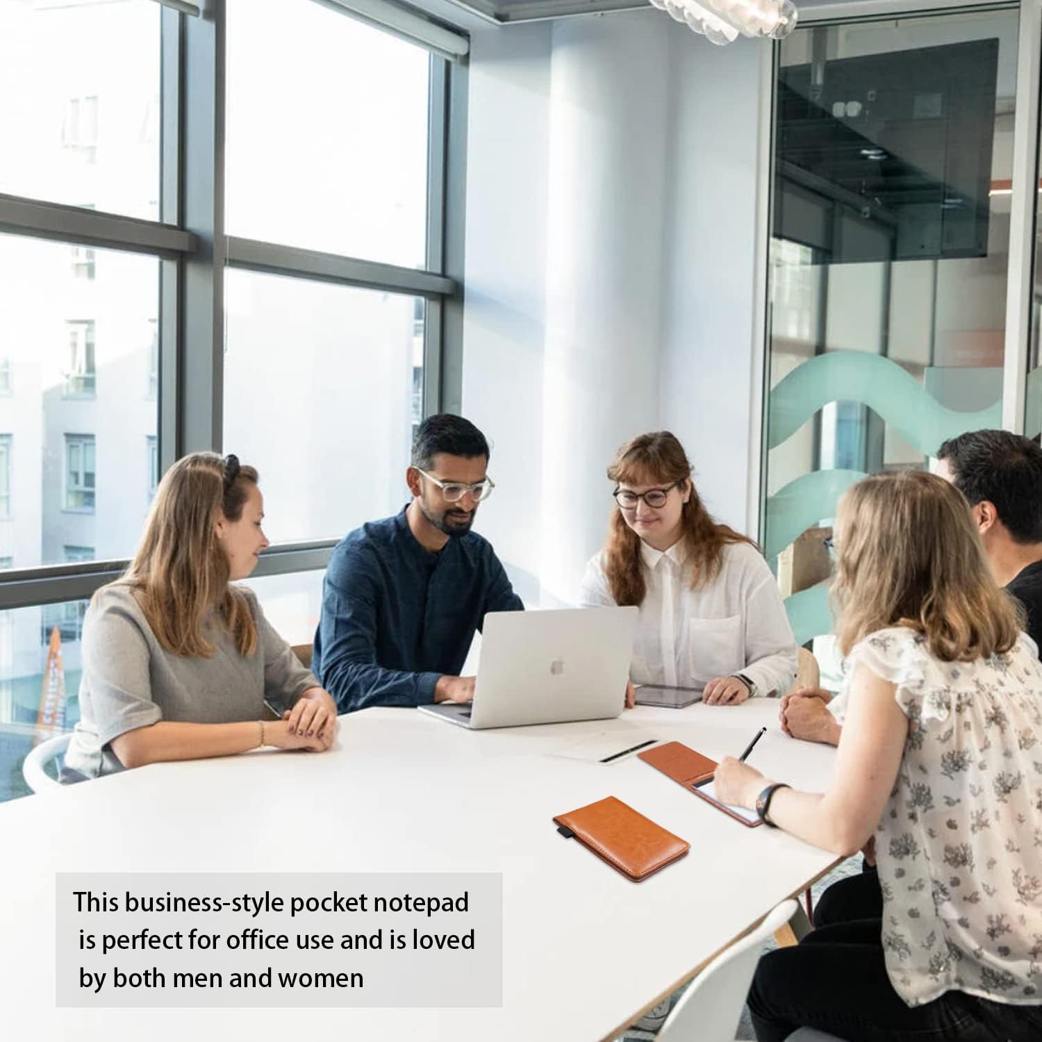 Xhwykzz 7 Pcs Small Pocket Notepad Holder Set, Pocket Notebook with pen for offices, schools, restaurants (Brown)