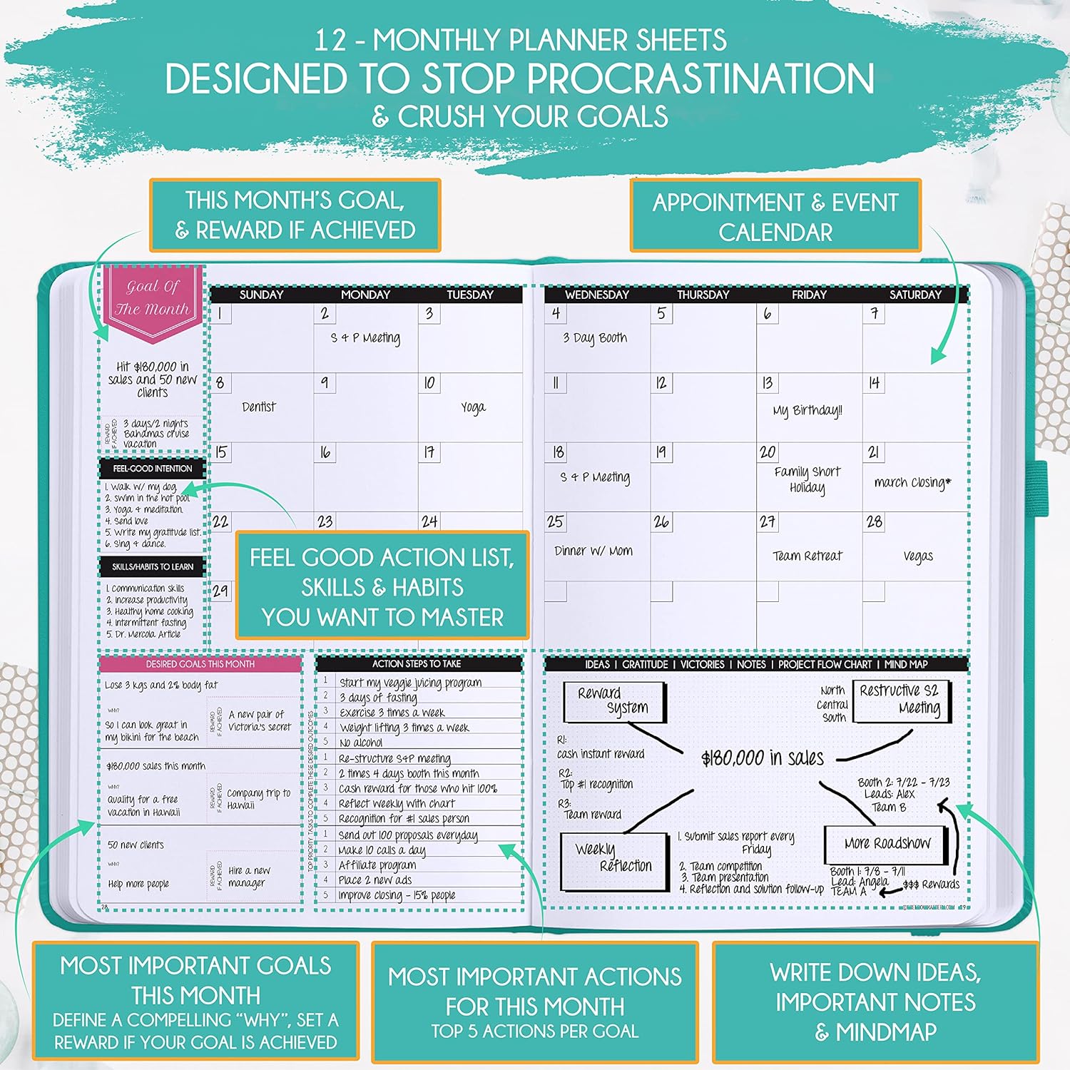 - INCREASE PRODUCTIVITY AND HAPPINESS - This is a deluxe life goal planner showing you how to become the best possible version of yourself on a mental, physical & interpersonal level using the law of attraction vibration guide. This 2025 planner is a daily planner, monthly planner, weekly planner, productivity planner, goal planner, business planner, to do list planner, planner notebook & gratitude journal all-in-one.