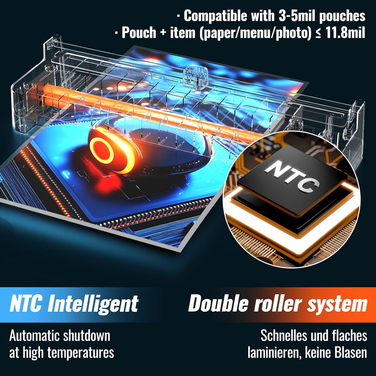 - ✅【Intelligent Protection & Dual Roll System】Laminator upgraded system ensures bubble- and wrinkle-free lamination in 360mm/min, , the machine gives a smooth lamination. Safety first, with an auto shut-off function,it lasts longer than ordinary laminator.