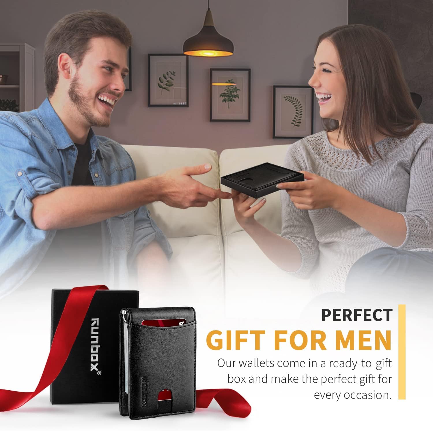 - Perfect Gifts for him: Our minimalist wallets packed with a pretty box, this mens slim wallet is a great present for boyfriend, brother, son, husband, dad, or your male friends on christmas, birthdays, anniversaries, and fathers Day