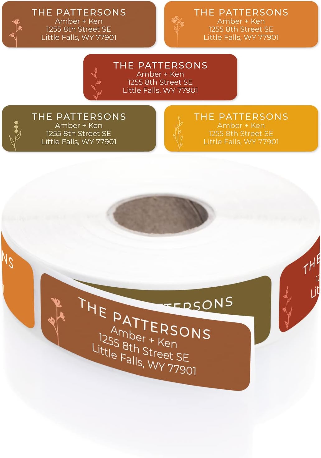 Botanical Flowers Rolled Address Labels/Roll of 250 Alternating Earth Tone Floral Illustrations Personalized Address Labels/Designer Return Address Stickers in Elegant Plastic Dispenser