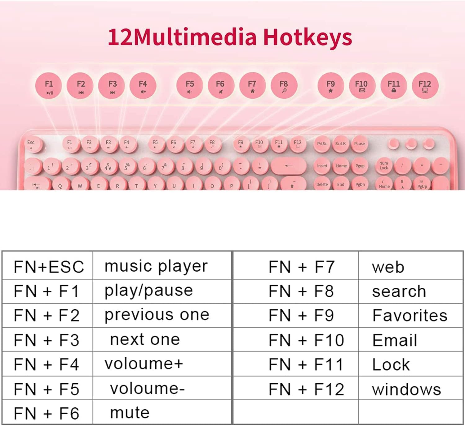 - 🎁 【WIDE COMPATIBILITY】💞Wireless Keyboard - Our wireless computer keyboard is 12 function keys for quick access to music, volume, mail, and more (please note that the hotkeys may not be fully compatible with Mac systems). This keyboard mouse combo is compatible with various operating systems, including Windows XP/ME/Vista/7/8/10/11. It works seamlessly with devices that have a USB slot, such as PCs, laptops, MacBooks, desktops, Chromebooks, and even Smart TVs.