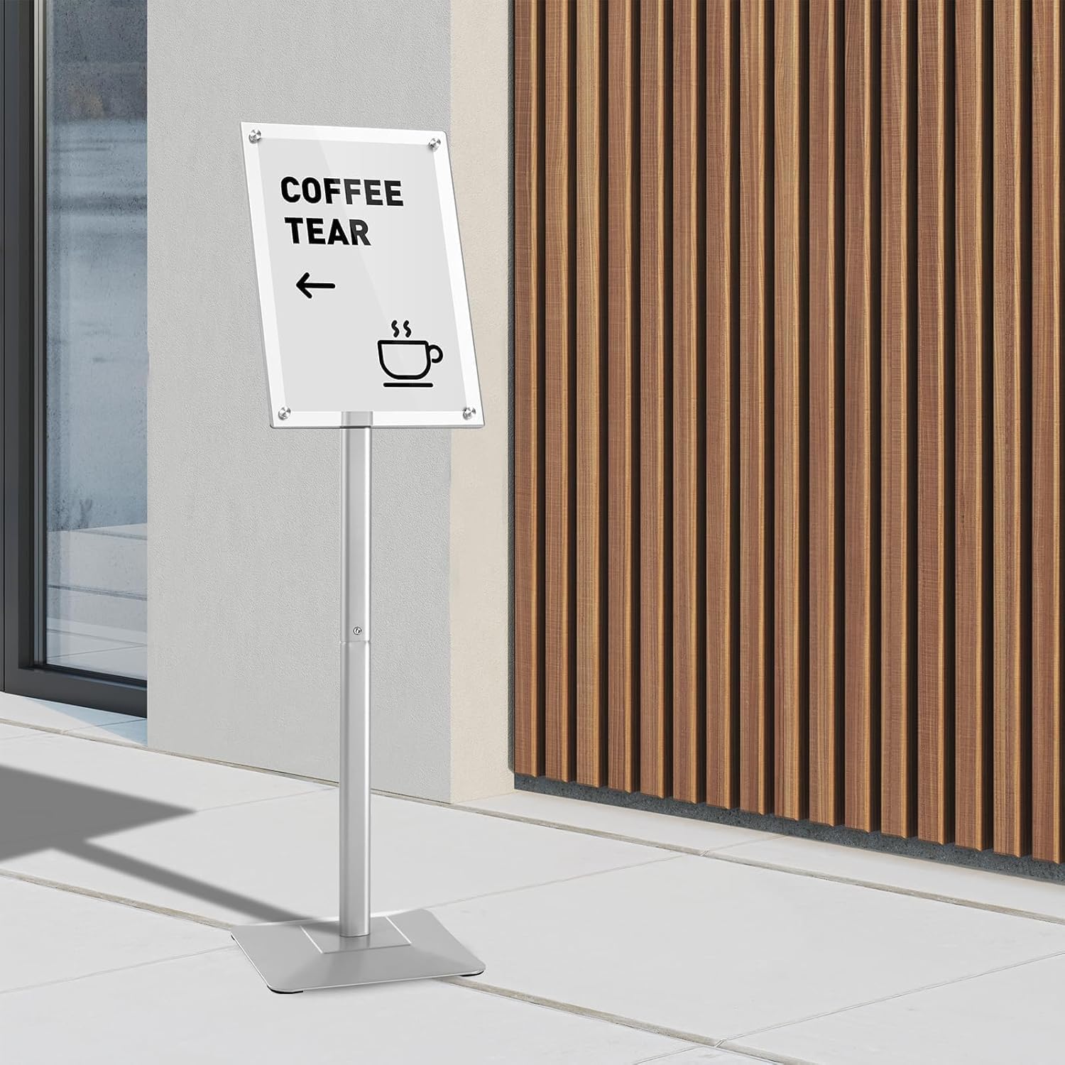 DISPLAYSWORKER Adjustable Heavy Duty Pedestal Sign holder floor Stand,sign stand poster stand ,acrylic frame for 8.5 x 11 inch,Silver (silver, acrylic frame 8.5-x-11-inch)